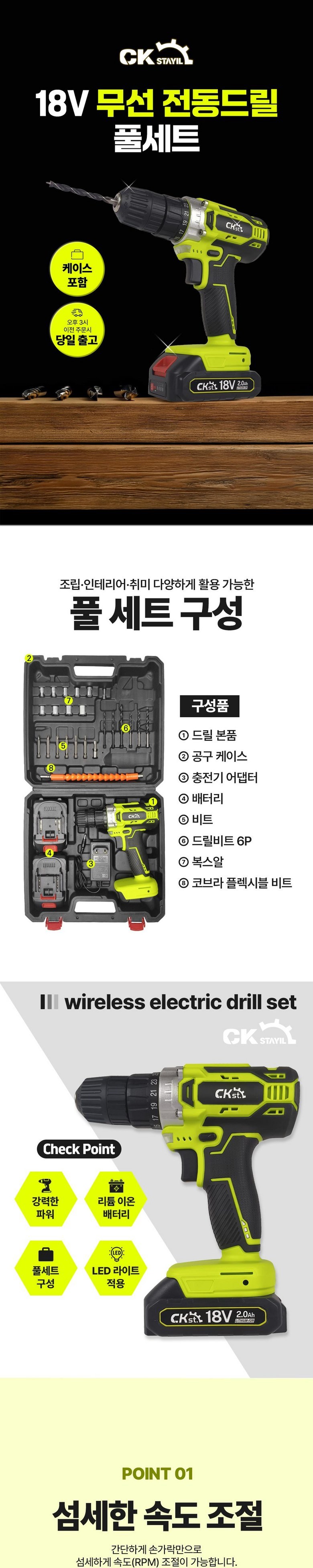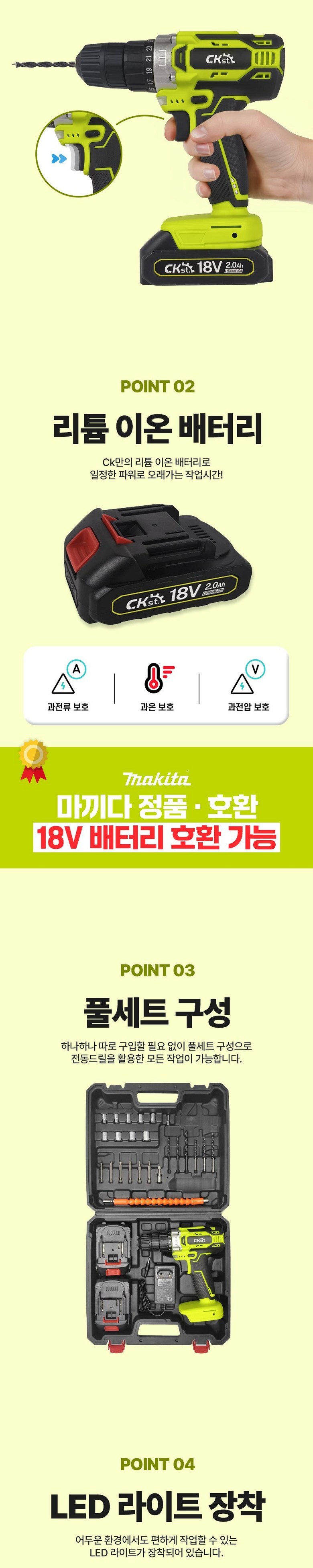 [국내출고] 무선 전동드릴 풀세트 마끼다호환 KC인증 배터리포함