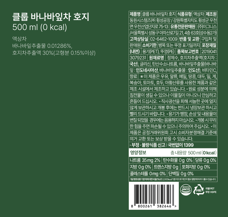 | 포장단위별 내용물의 용량(중량), 수량 | 500ml * 24개 | 원재료명 및 함량 | 컨텐츠 참조 |