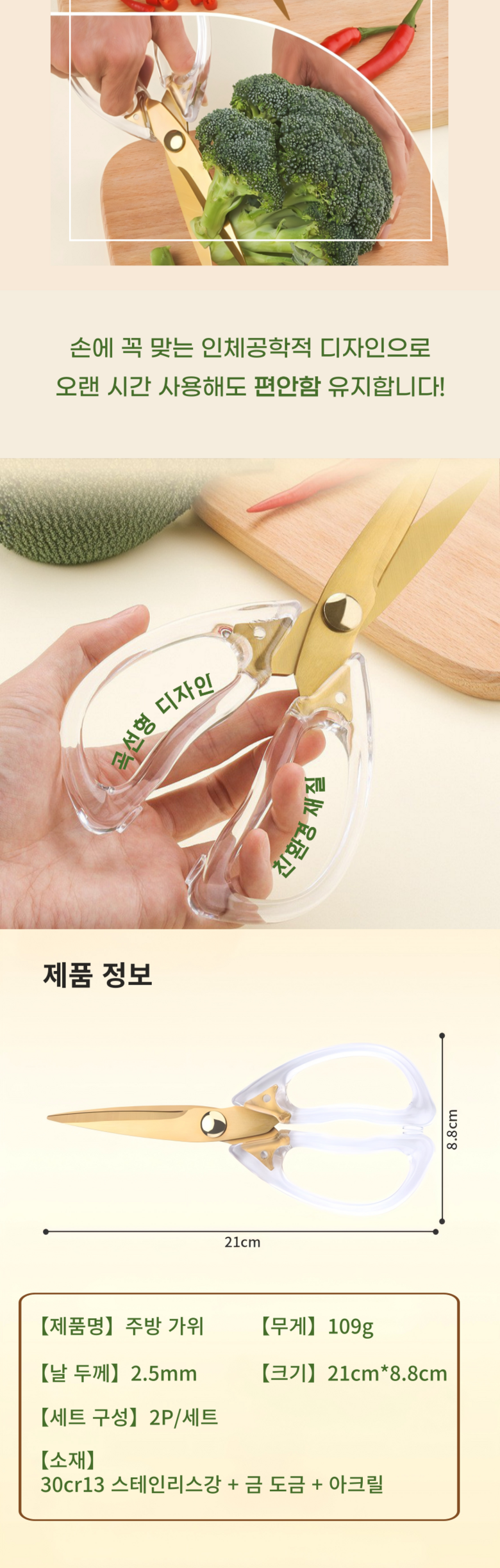 | 품명 및 모델명 | COVERONE 다용도 고급스러운 디자인 인체공학적 투명 손잡이 주방 가위 | 인증/허가 사항 | 해당사항없음 |