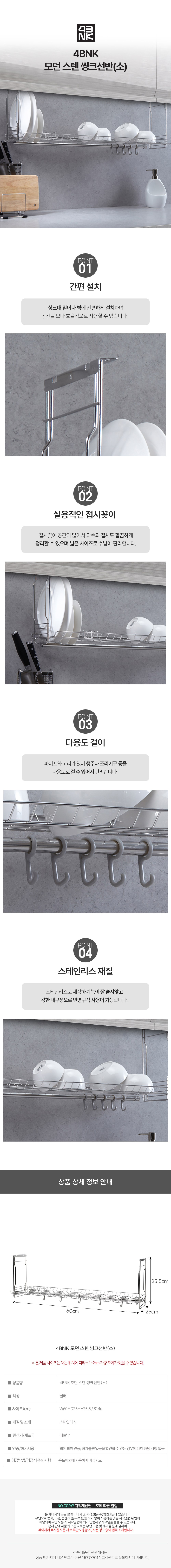 | 품명 및 모델명 | 4BNK 모던 스텐 씽크선반(소) | 재질 | 컨텐츠참조 |