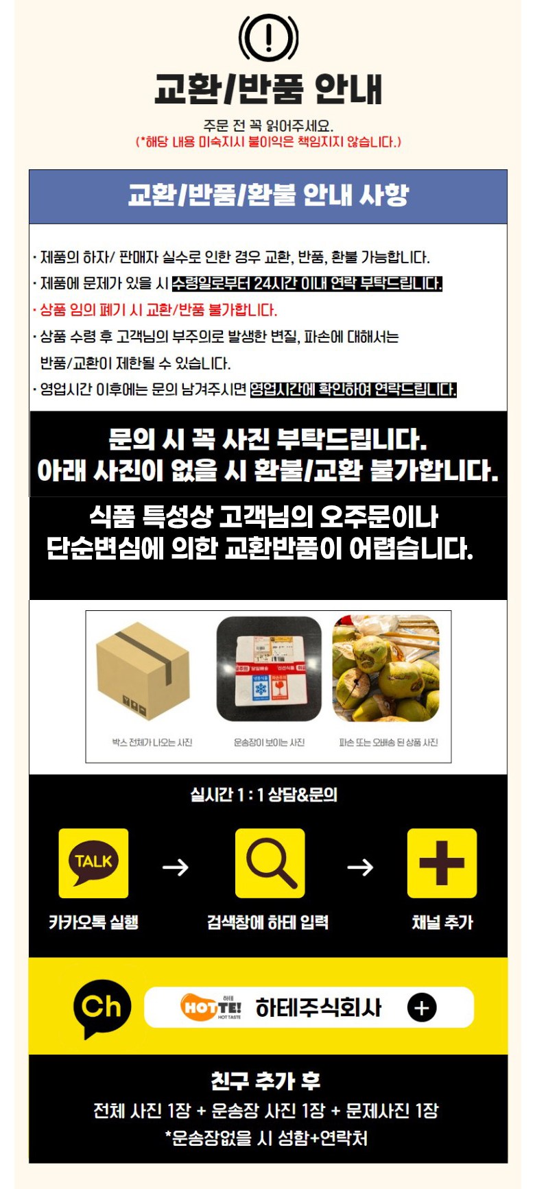 - ㆍ교환/반품에 관한 일반적인 사항은 판매자가 제시사항보다 관계법령이 우선합니다.
