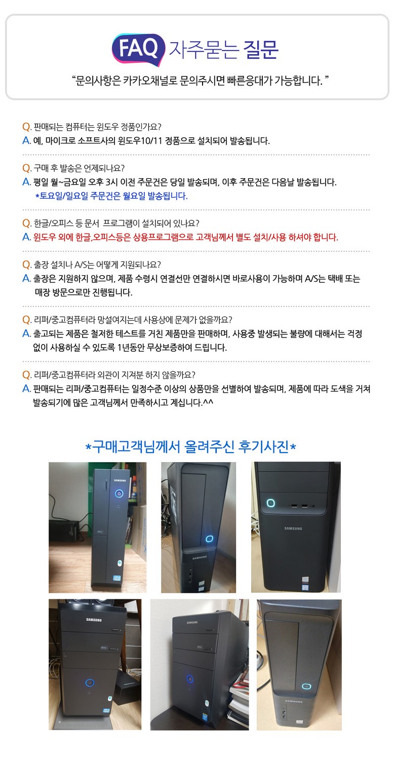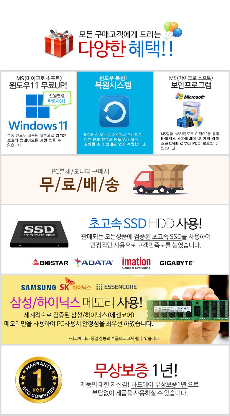 - ㆍ제조사의 사정 (신모델 출시 등) 및 부품 가격 변동 등에 의해 무료 교환/반품으로 요청하는 경우