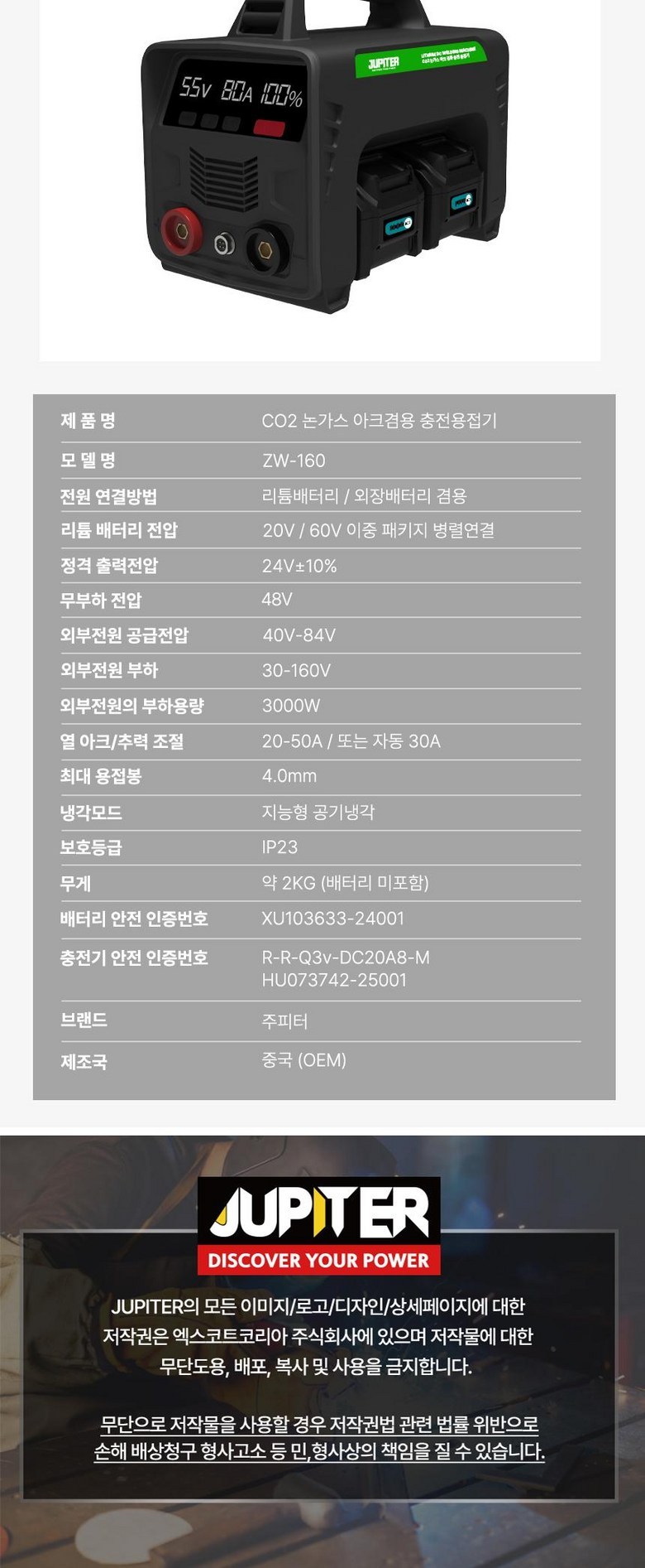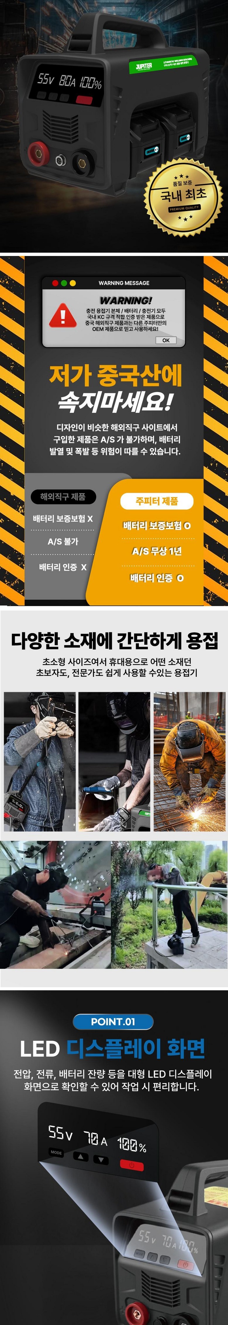 주피터 충전 용접기 논가스 아크 겸용 휴대용 충전식 미니 무선 용접기 풀세트