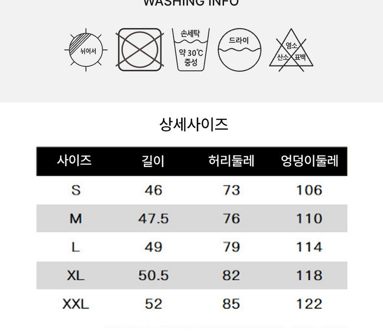 - 하의 사이즈: 남성 XXL 이상