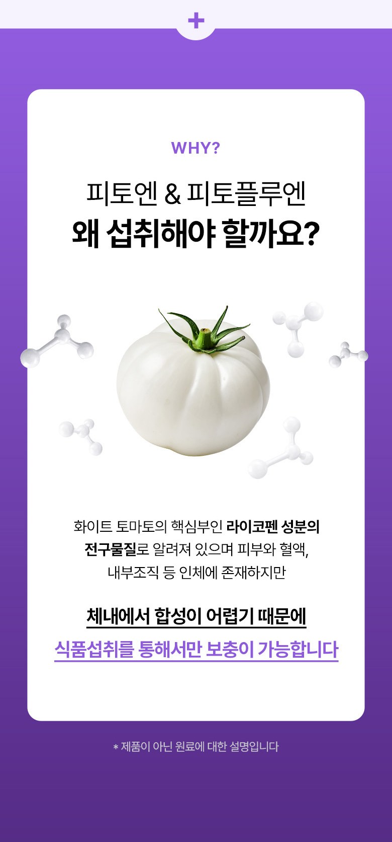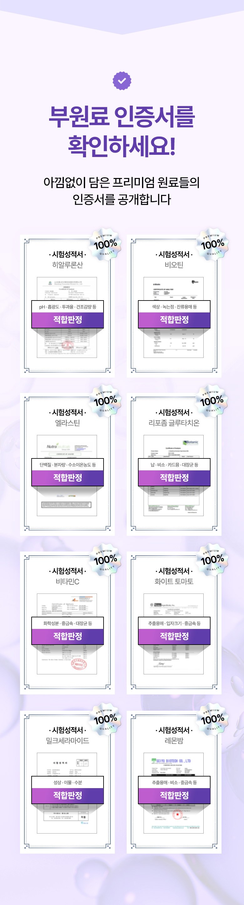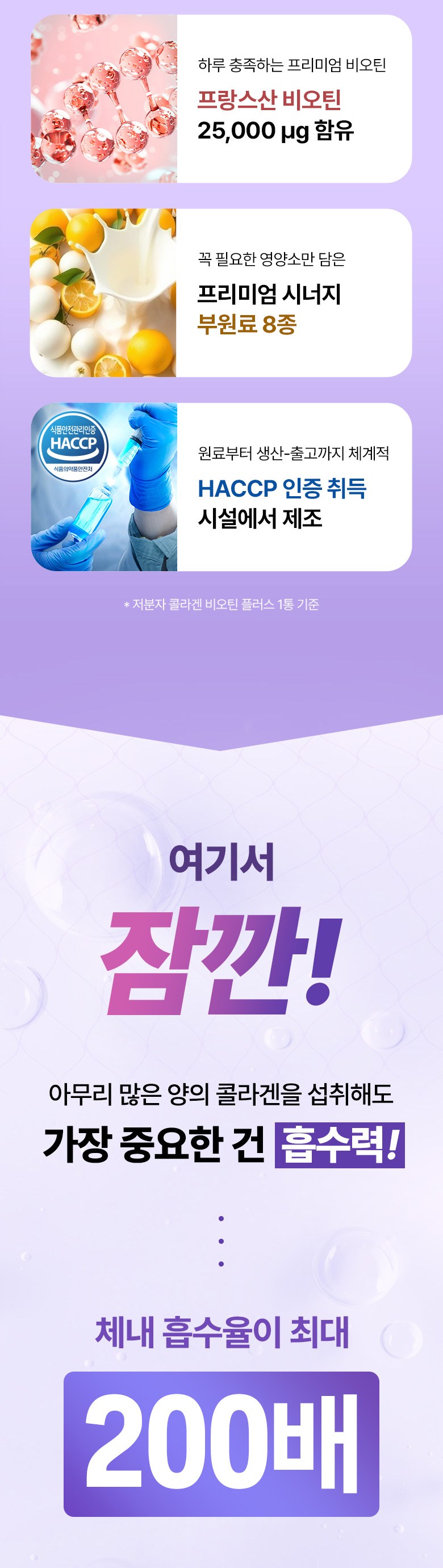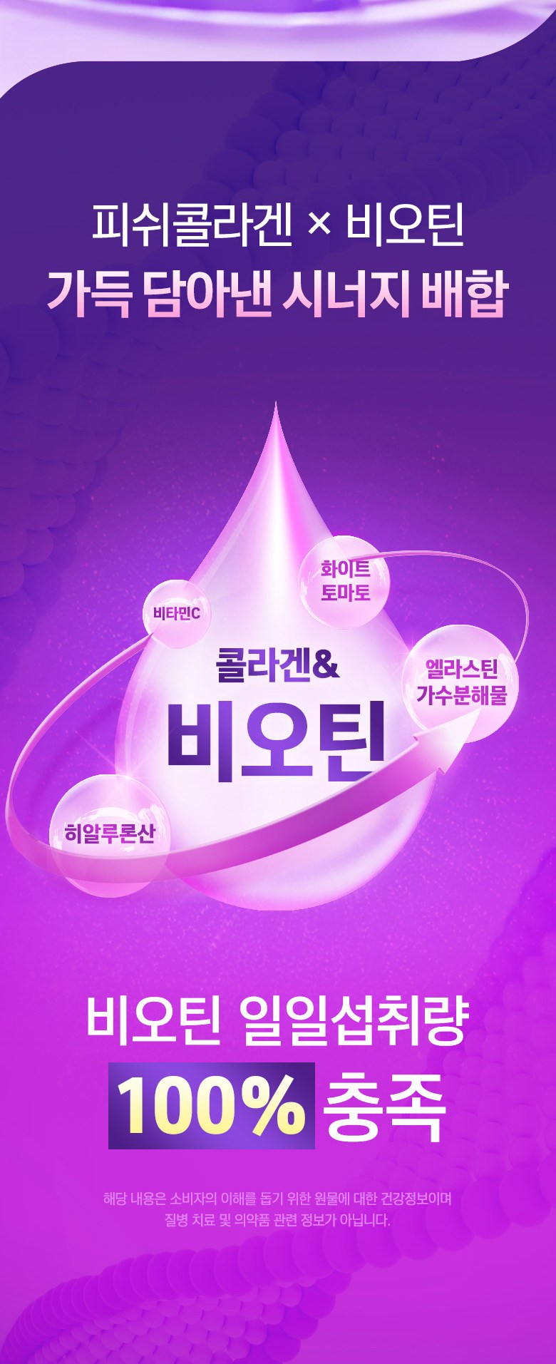 | 원료명 및 함량 | 초저분자피쉬콜라겐펩타이드(인도산),정제포도당,화이트토마토농축분말(미국산),비타민C,엘라스틴가수분해물(미국산),리포좀 글루타치온 G-90,비오틴,히알루론산,우유단백질농축물(밀크세라마이드),밀추출분말(글루코실세라마이드),레몬밤 추출분말,이산화규소,스테아린산마그네슘,토마토,밀,우유,대두 함유 | 영양정보 | 해당사항없음 |