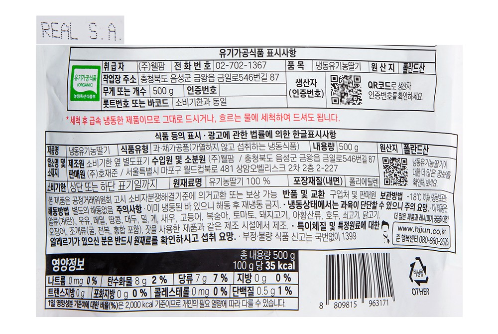 냉동 유기농 딸기