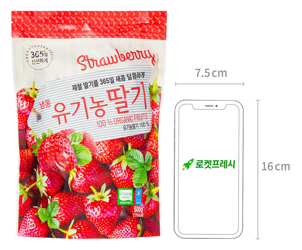 꼭지가 제거되어 간편하게 즐길 수 있는 유기농 딸기예요. 잘 익었을 때 수확 후 급속 냉동해 상큼한 향이 살아있답니다. 새콤달콤한 과즙을 품고 있으니 잘 갈아 스무디로 드셔보세요. 딸기청이나 요거트 토핑으로 활용하셔도 좋아요.