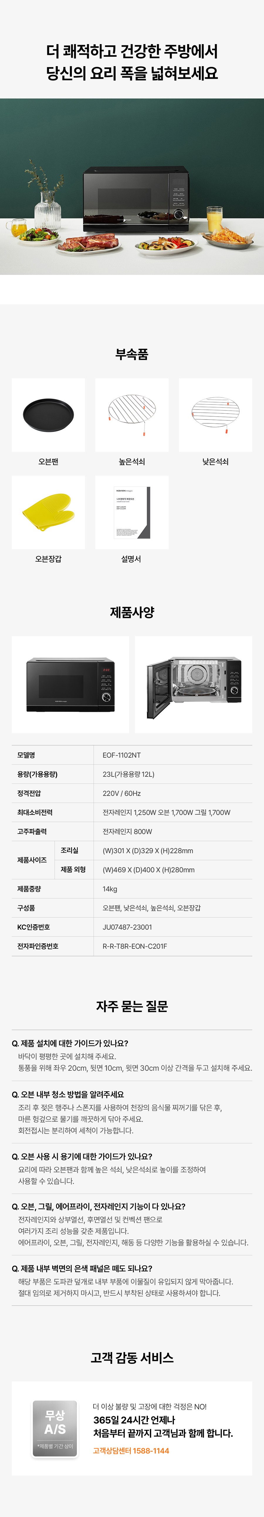| 품명 및 모델명 | 전자레인지 / EOF-1112NT | KC 인증정보 | JU07487-23001A, R-R-T8R-EON-C201F |