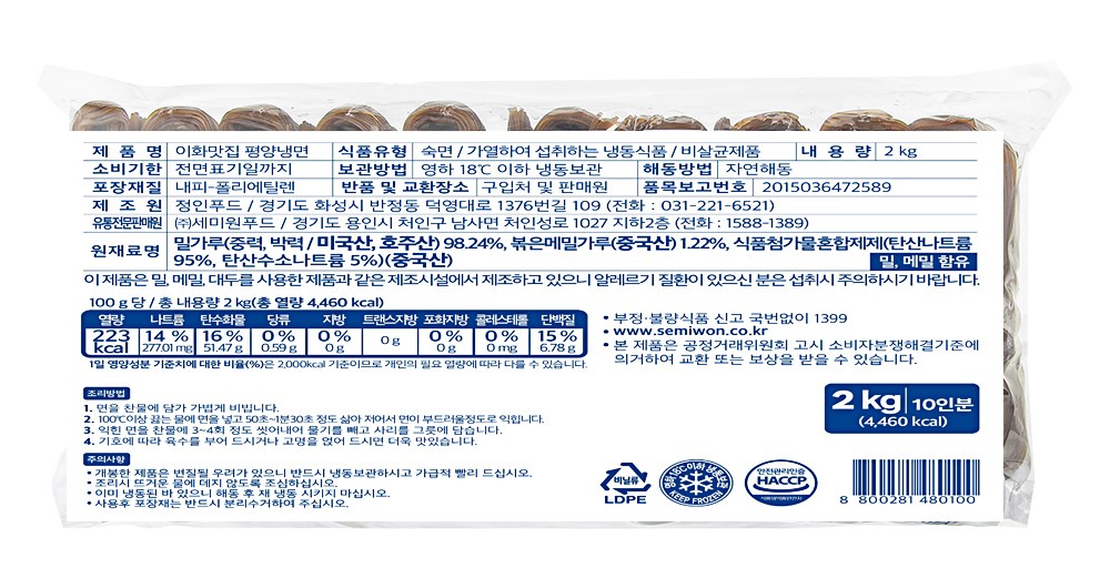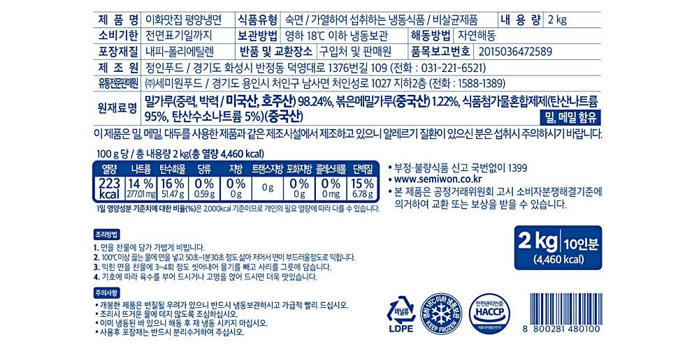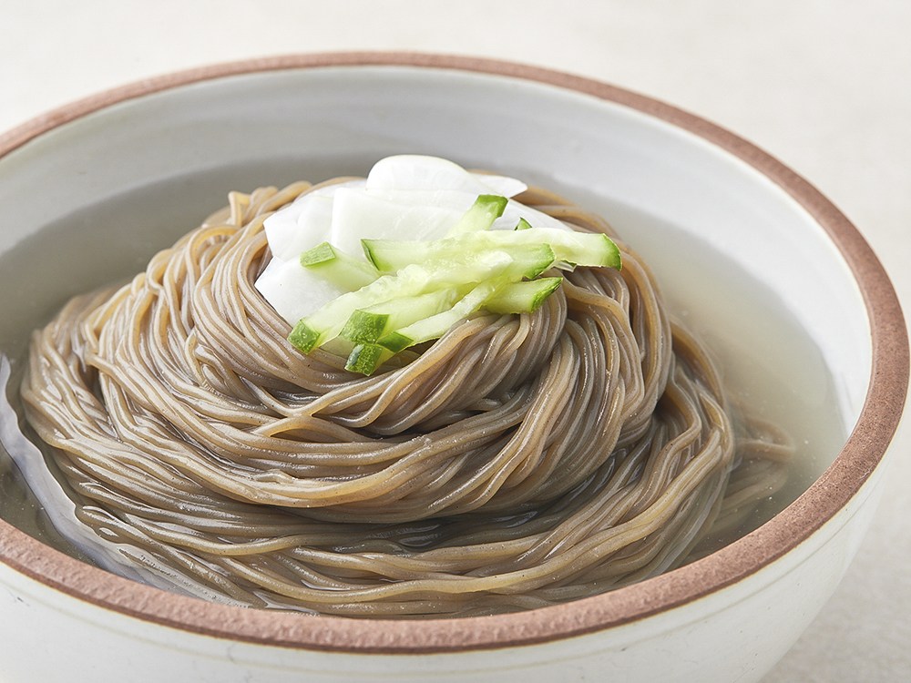 너무 얇지 않아 쫄깃쫄깃 씹는 맛이 있는 평양냉면 사리예요. 볶은메밀가루를 사용해 풍미가 좋고, 다양한 양념이나 소스와 조화롭게 어우러진답니다. 끓는 물에 탱글탱글하게 삶아 냉면을 완성해보세요.