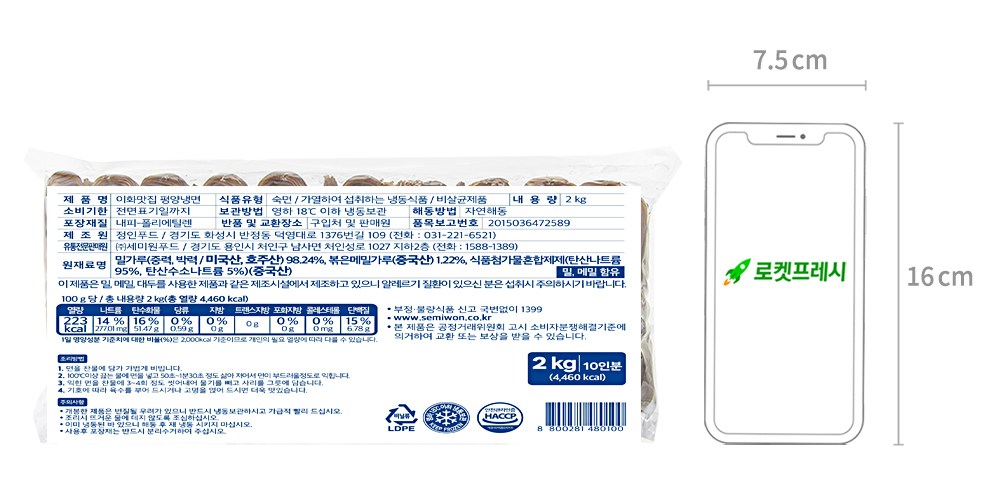 | 배송방법 | 신선/냉장/냉동 | 배송비 | 무료배송 - 로켓프레시 상품 중 15,000원 이상 구매 시 무료배송 - 해당 서비스 가능 지역에 한함 |