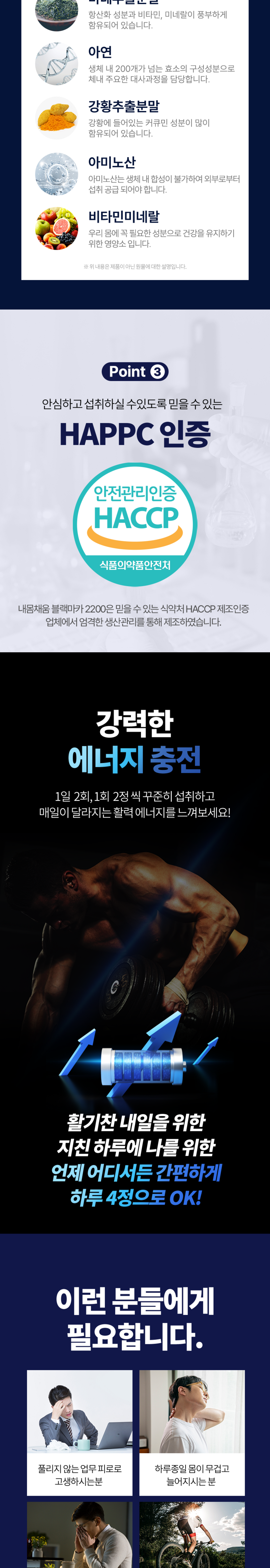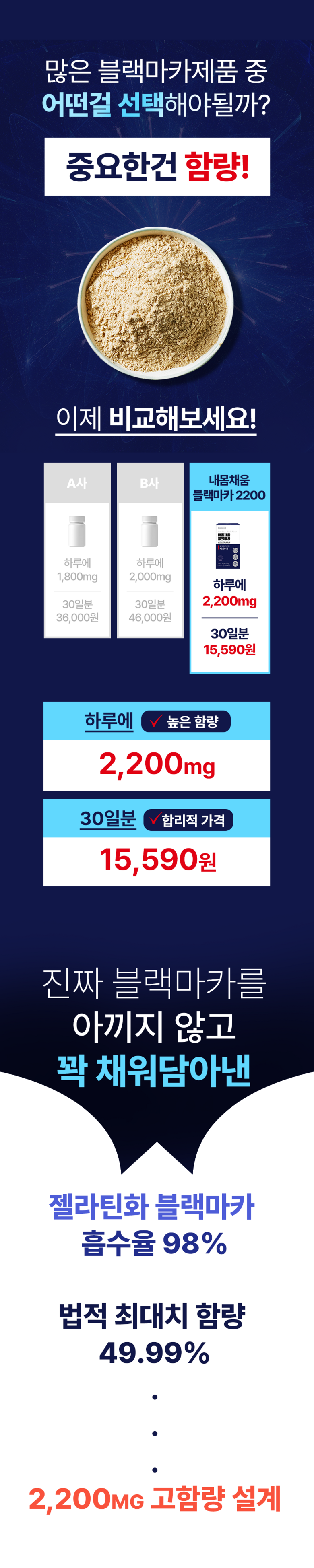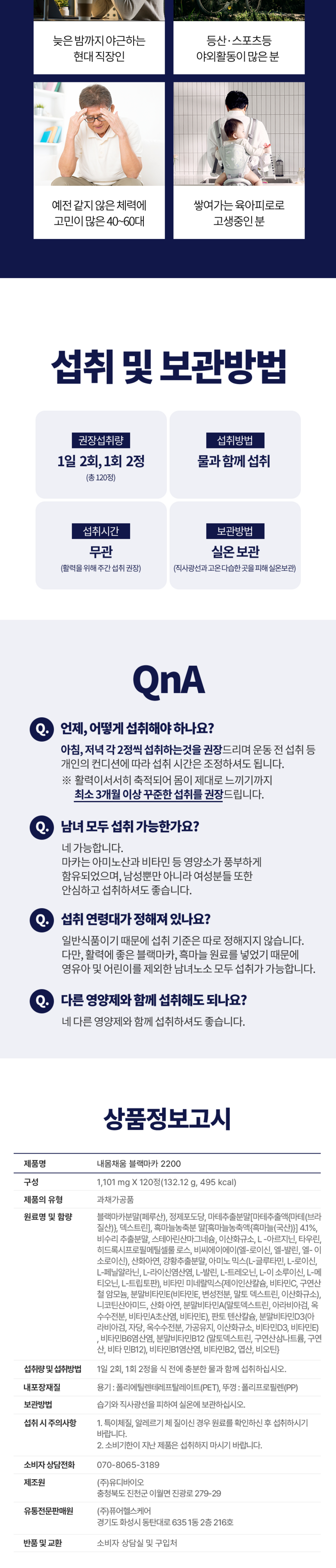 | 제품명 | 내몸채움 블랙마카 2200 | 식품의 유형 | 상품 상세페이지 참조 |