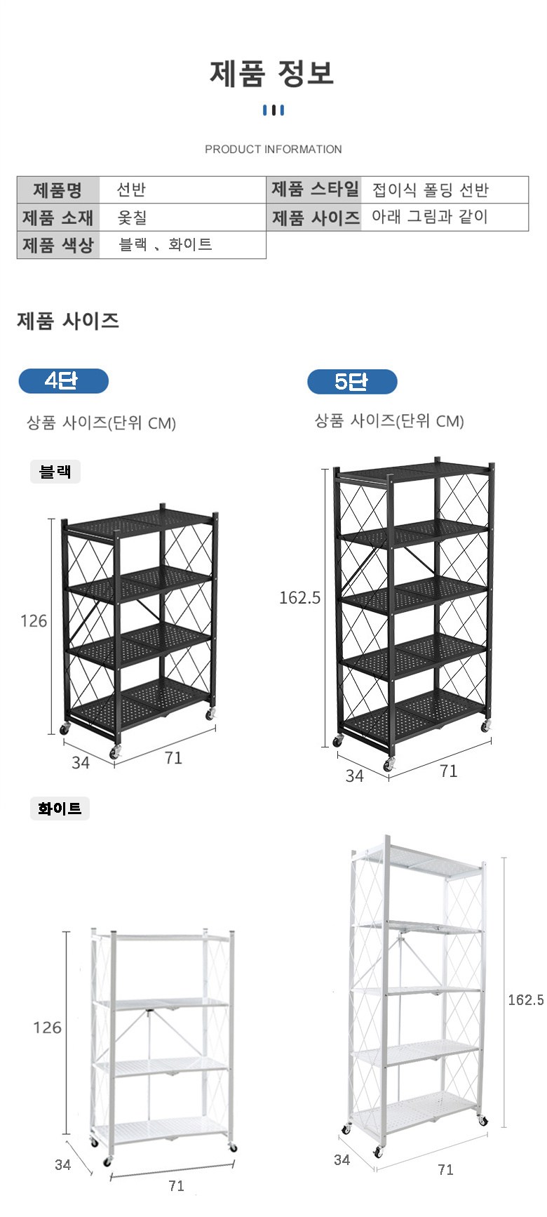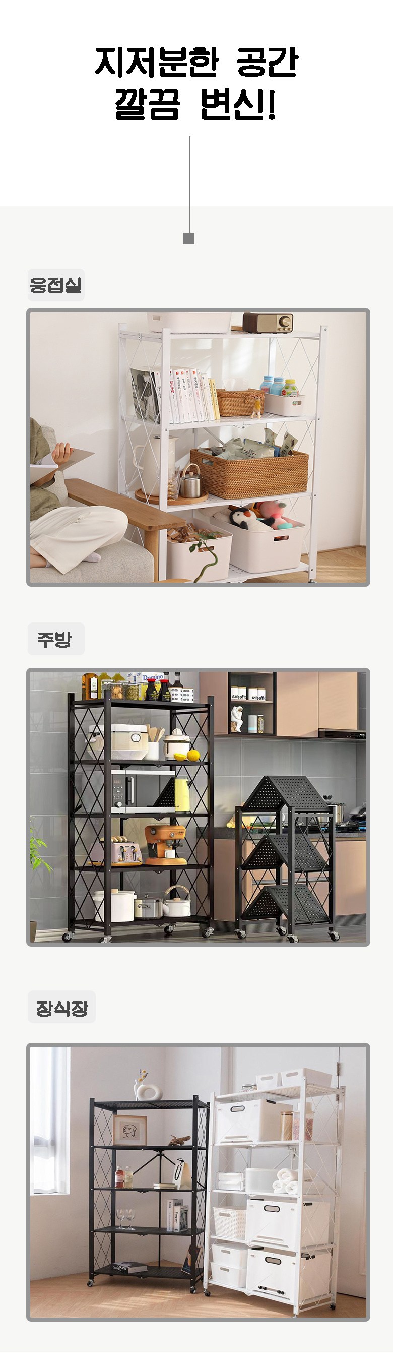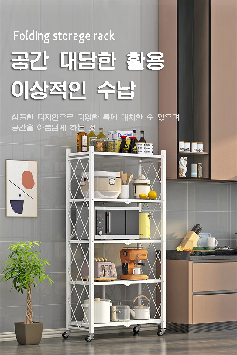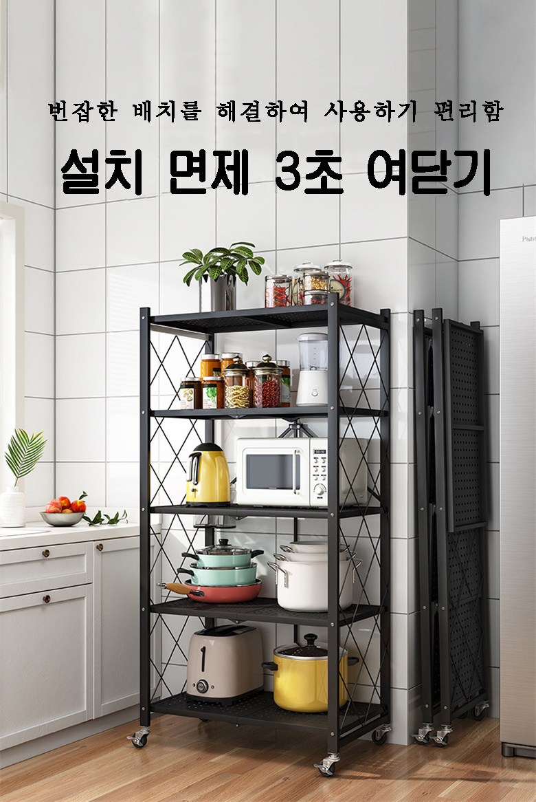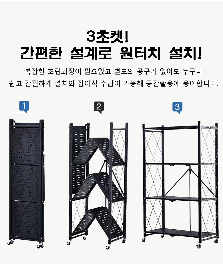 원터치 접이식 다용도 이동식 선반 수납선반 수납함 주방 거실 창고