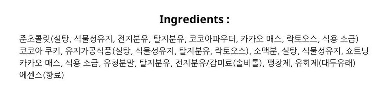 블랙 코코아 비스킷과 하드 비스킷을 초콜릿으로 코팅한 상품입니다.