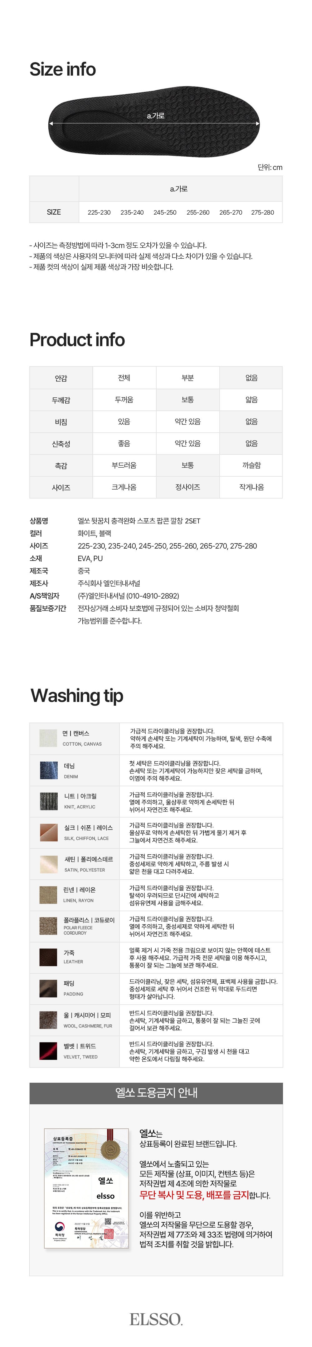 | 품명 및 모델명 | 엘쏘 뒷꿈치 충격완화 스포츠 팝콘 깔창 | 인증/허가 사항 | 해당없음 |
