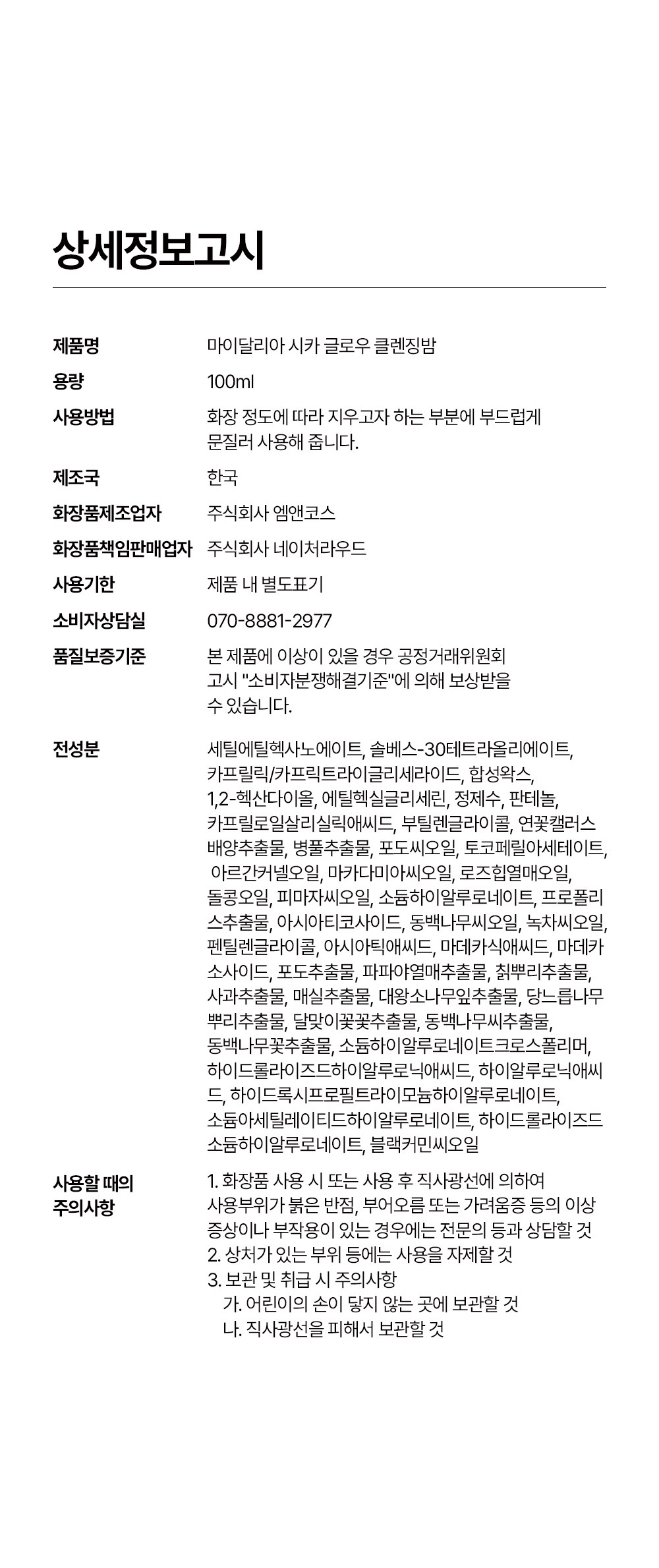 | 화장품제조업자, 화장품책임판매업자 및 맞춤형화장품판매업자 | 컨텐츠 참조 | 제조국 | 컨텐츠 참조 |
