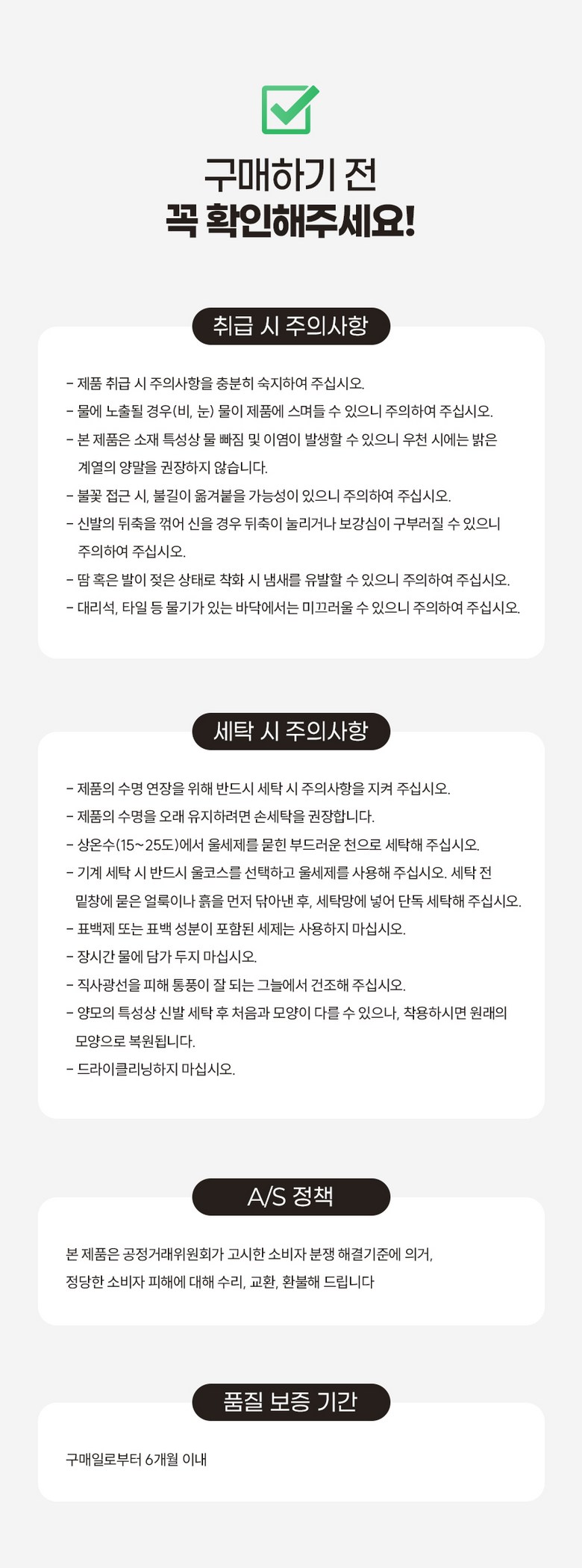 - ㆍ교환/반품에 관한 일반적인 사항은 판매자가 제시사항보다 관계법령이 우선합니다.