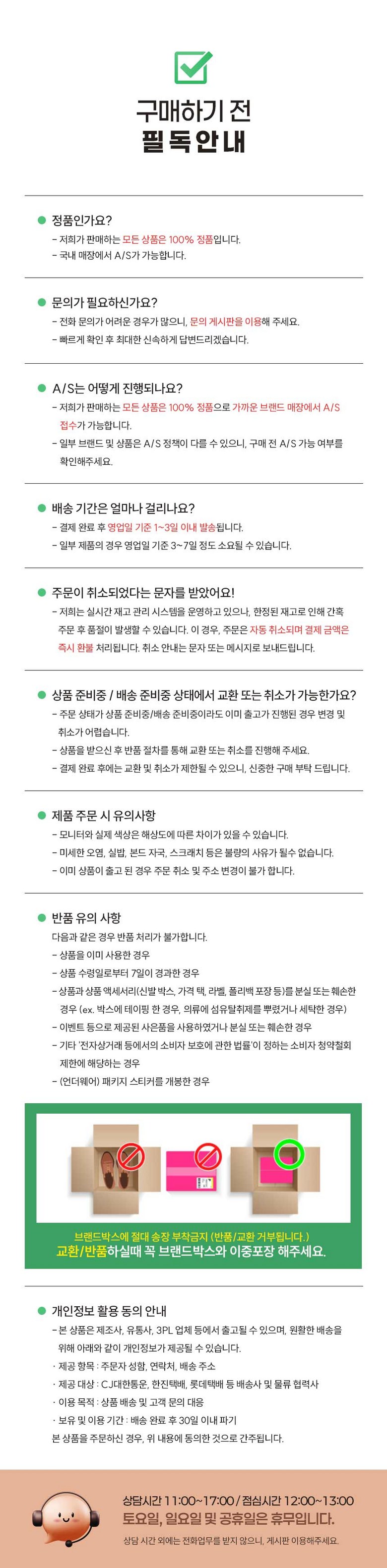 - ㆍ모니터 해상도의 차이로 인해 색상이나 이미지가 실제와 달라, 고객이 단순 변심으로 교환/반품을 무료로 요청하는 경우