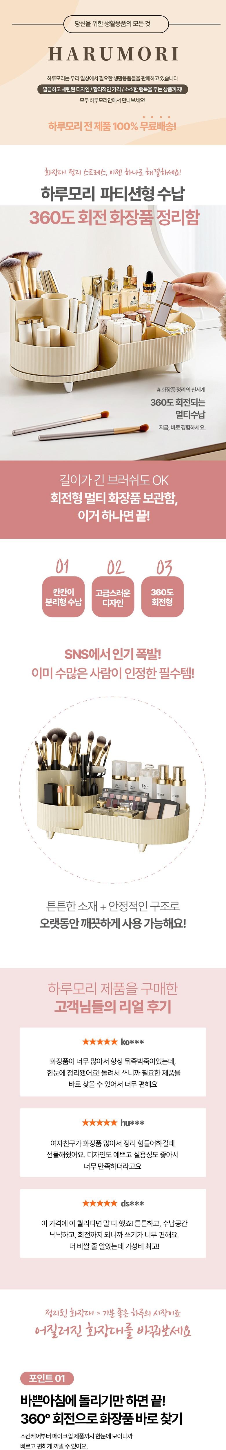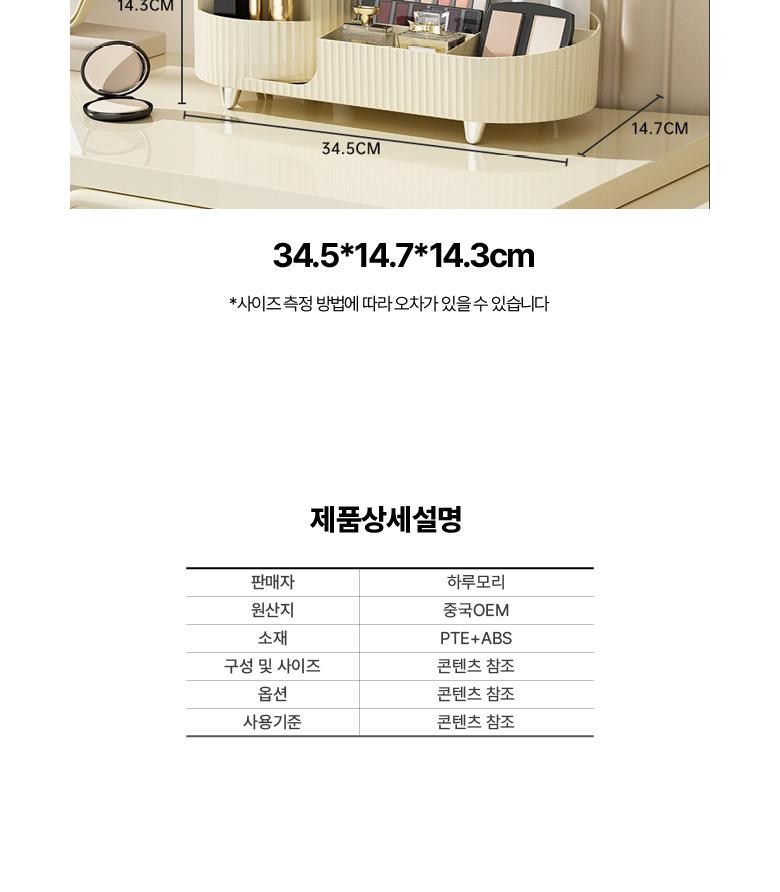 | 품명 및 모델명 | 하루모리 회전형 올인원 분리수납 화장품정리함 화장대 정리 보관함 | 인증/허가 사항 | 법에 의한 인증·허가 등을 받았음을 확인할 수 있는 경우 그에 대한 사항 |