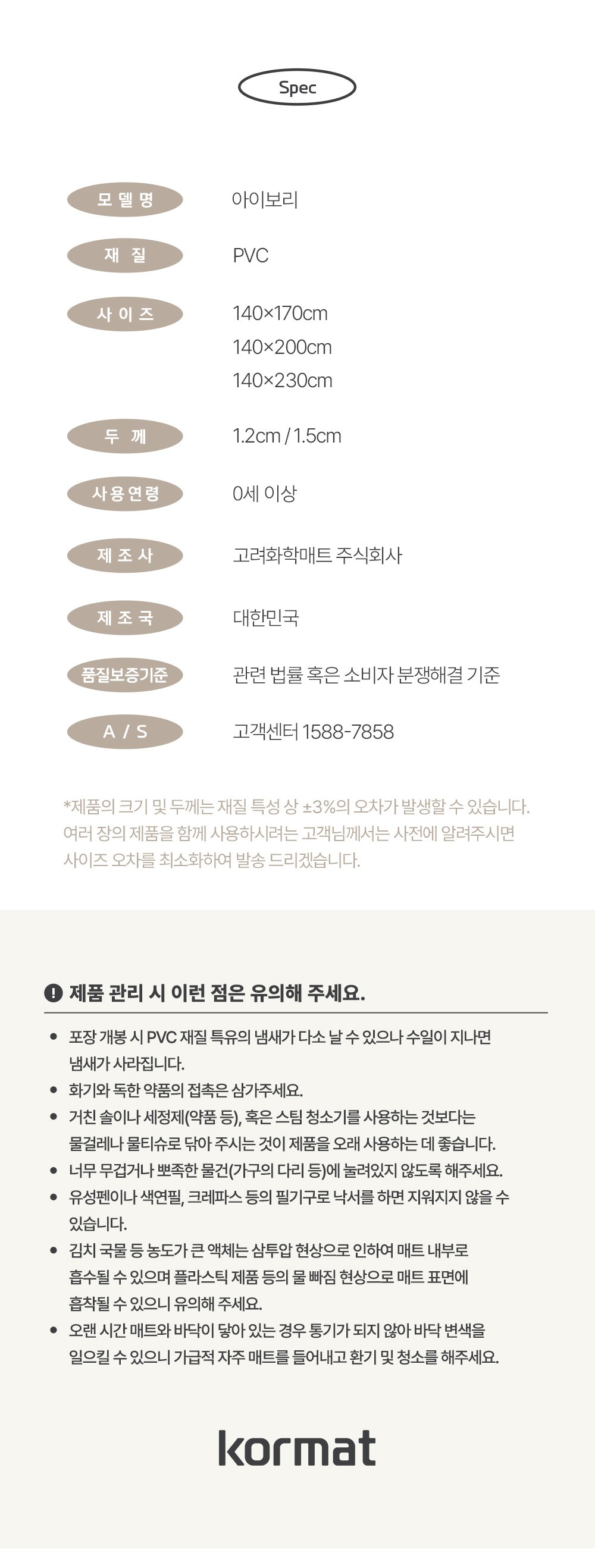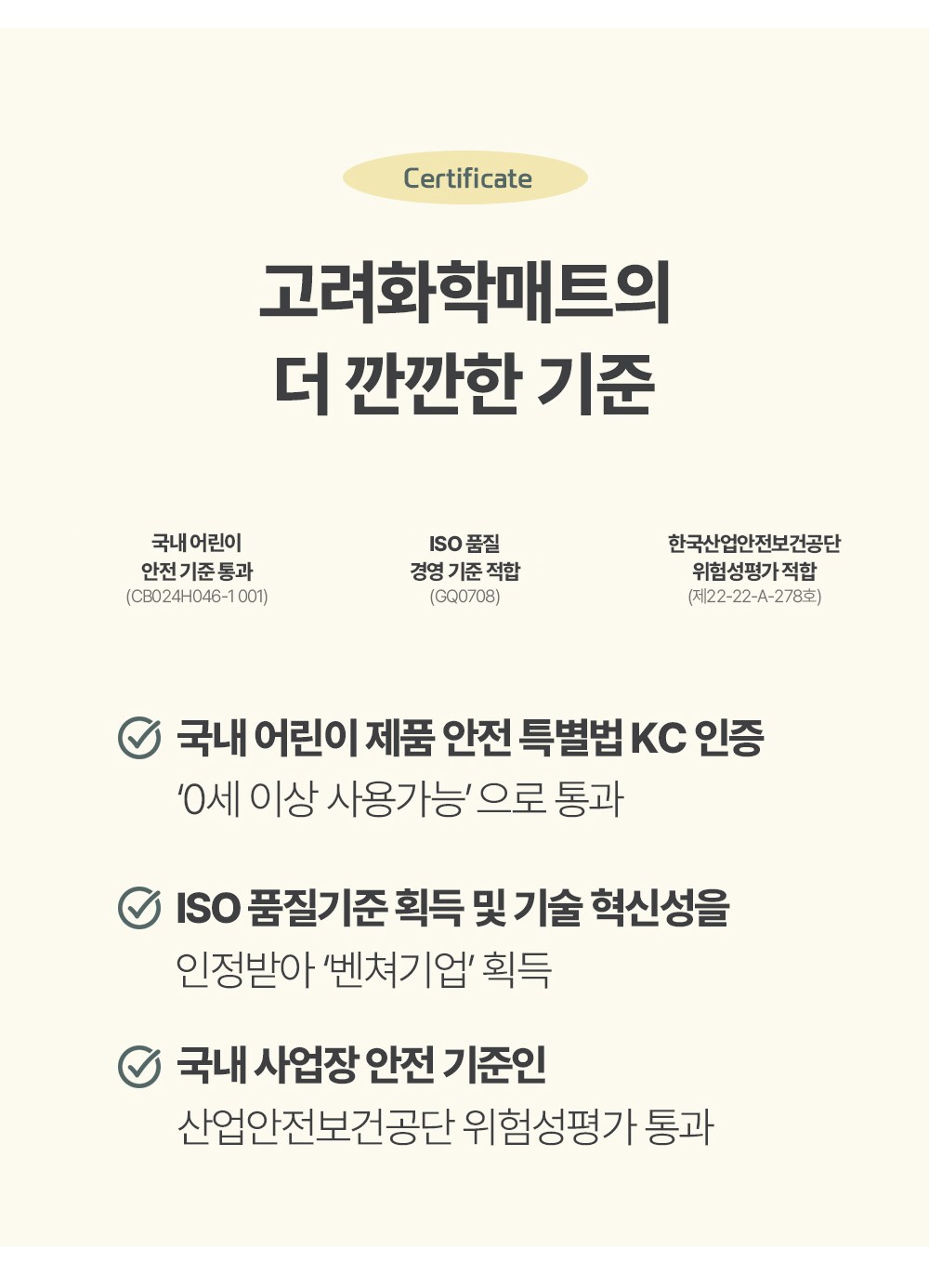 | 품명 및 모델명 | 고려화학매트 에코 놀이방매트 아이보리 | KC 인증정보 | CB024H046-1001 |