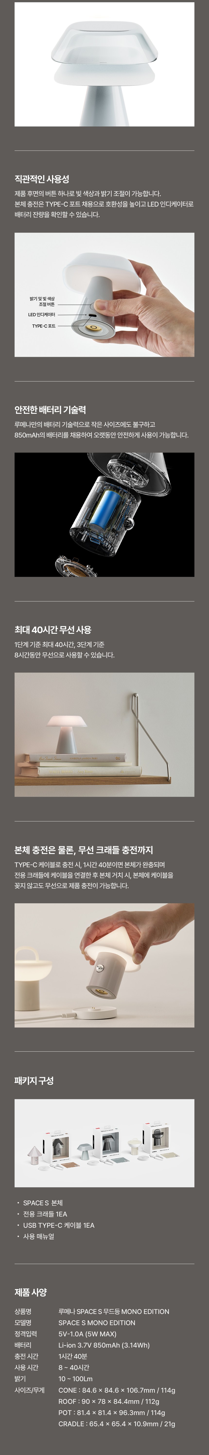 | 품명 및 모델명 | 루메나 무드등 SPACE S CONE / SPACE S CONE | KC 인증정보 | 본품:해당없음ㅣ전지:XU100557-23034B |