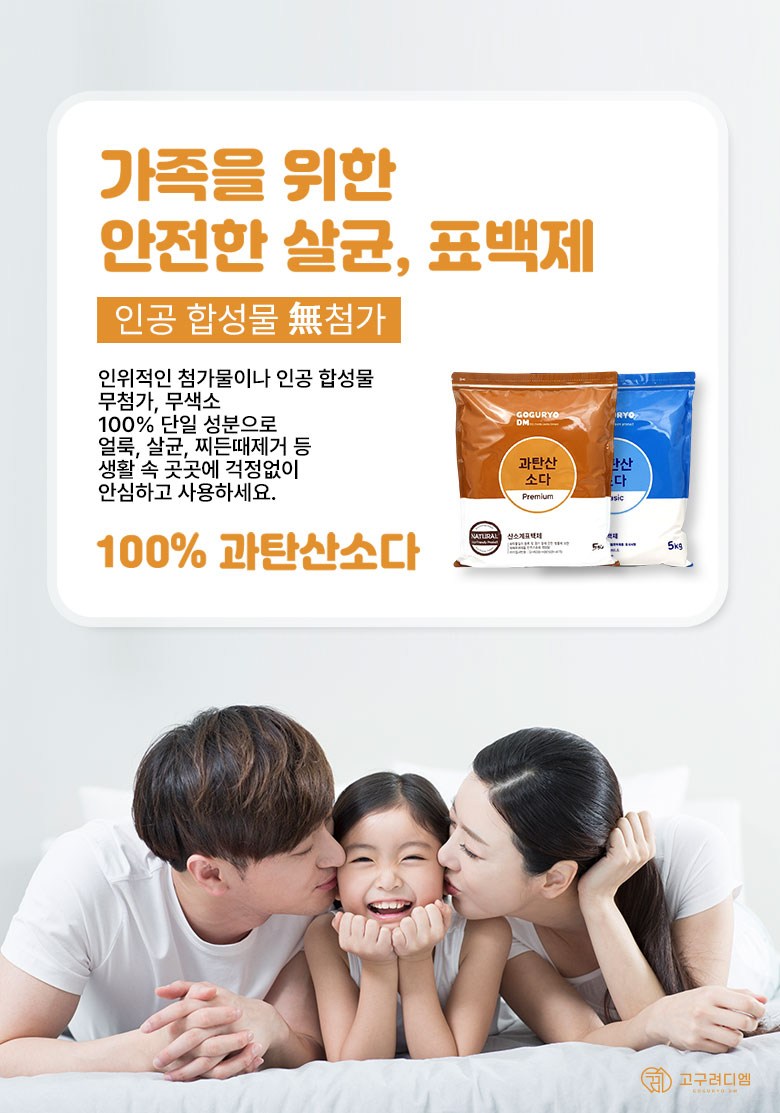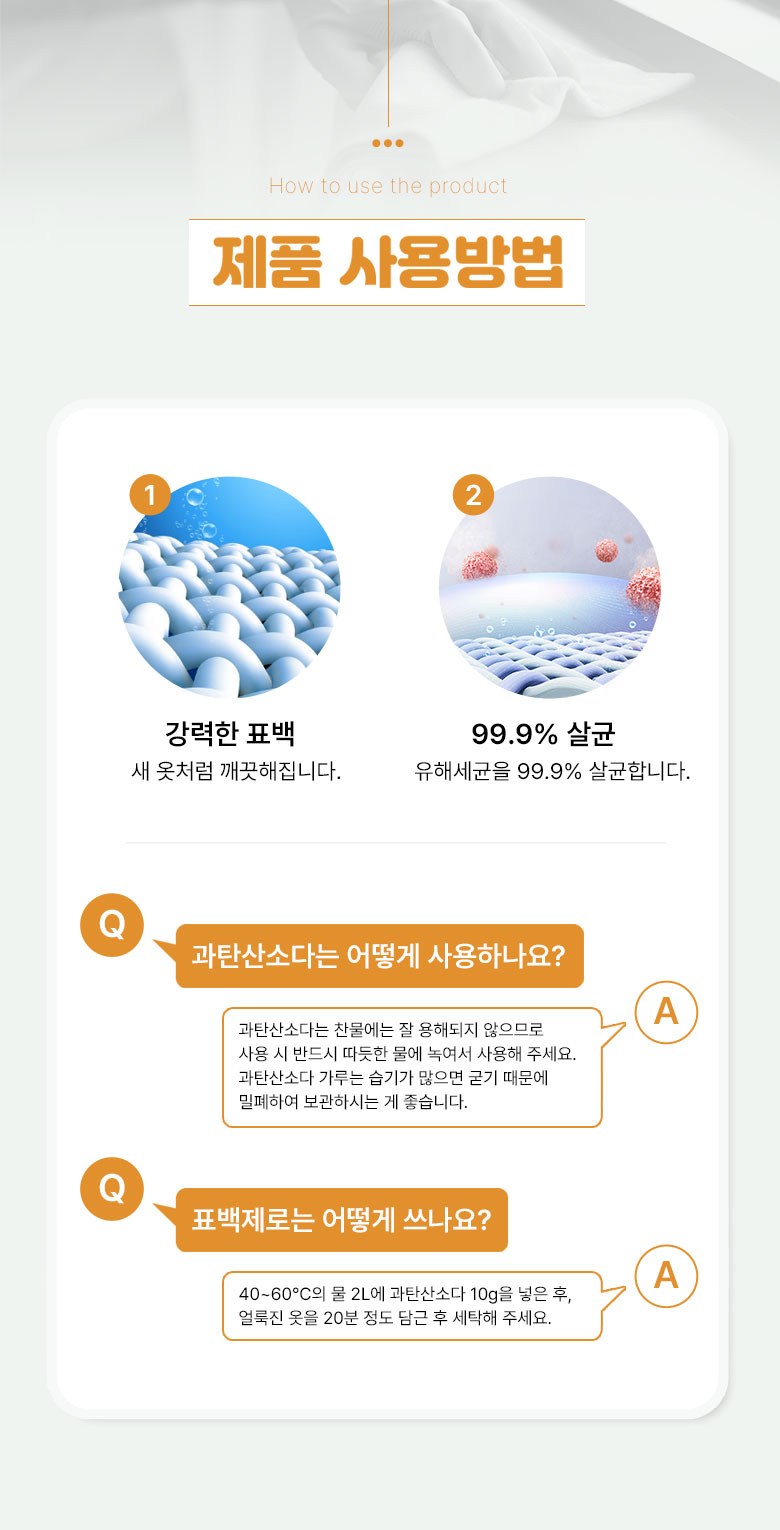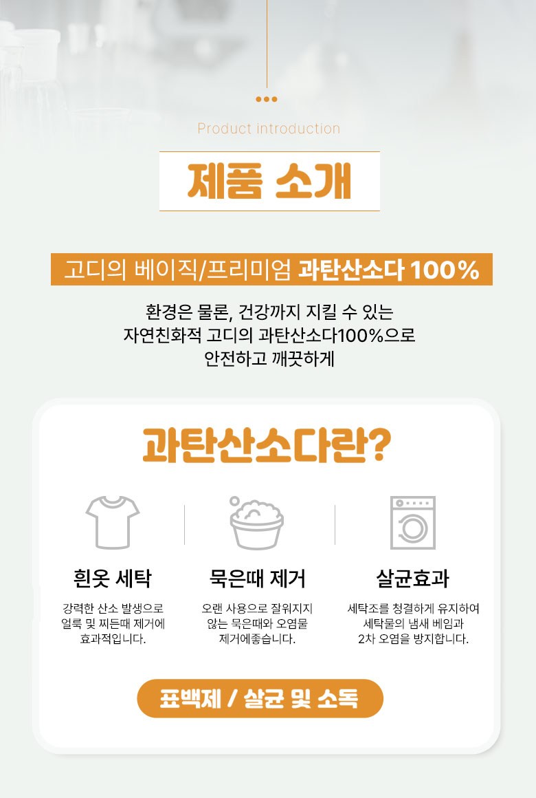 | 품목 및 제품명 | 품목 : 표백제, 제품명 : 과탄산소다 베이직 | 용도(표백제의 경우 계열을 함께표시) 및 제형 | 용도 : 섬유용(과탄산나트륨계) 외 1종, 제형 : 비분사형-분말형 |