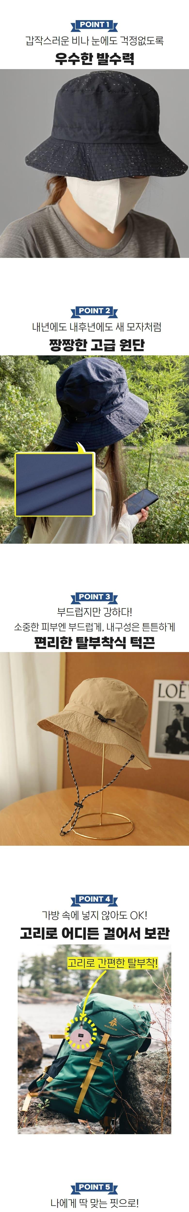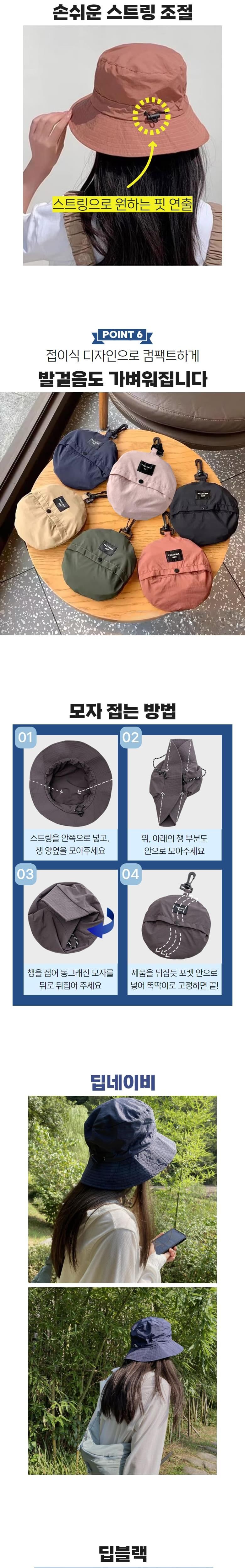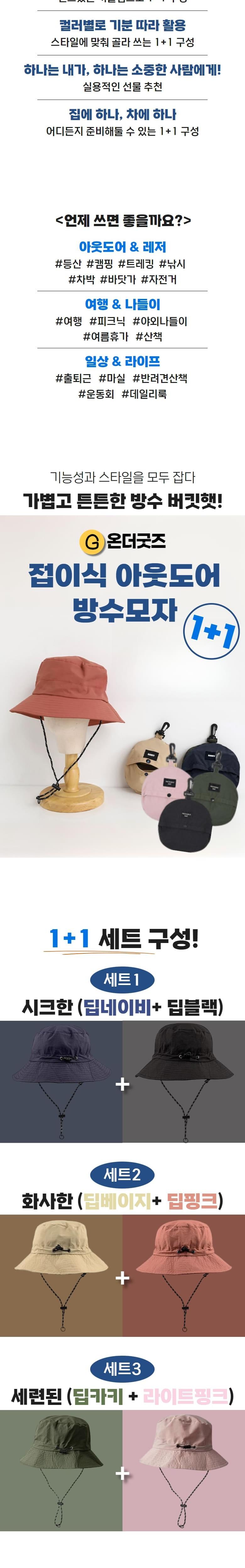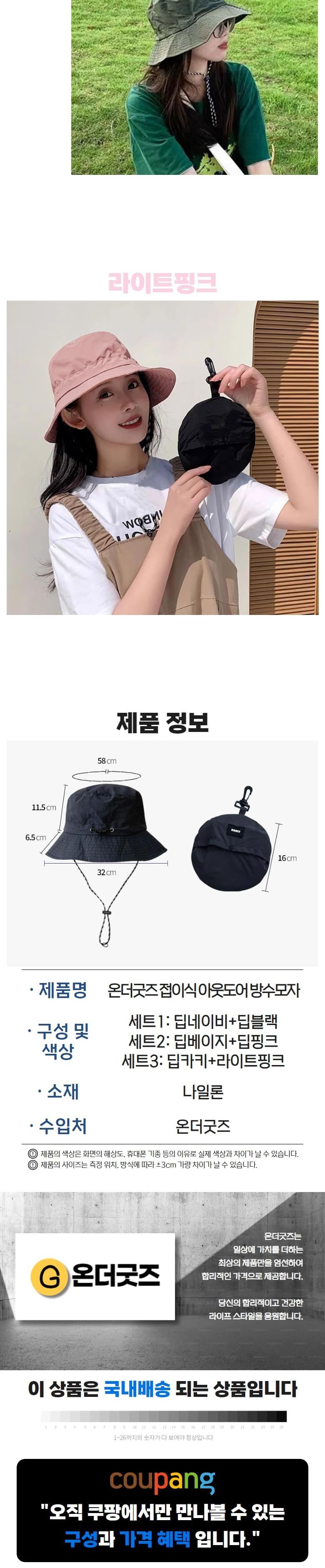 온더굿즈 포켓형 접이식 방수모자 아웃도어 자외선차단 햇빛차단 물놀이 등산 낚시 서핑모자 접이식 버킷햇 포켓모자