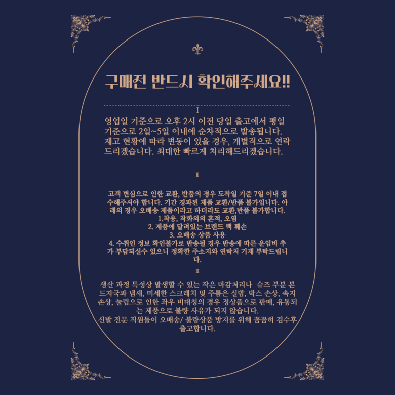 - ㆍ모니터 해상도의 차이로 인해 색상이나 이미지가 실제와 달라, 고객이 단순 변심으로 교환/반품을 무료로 요청하는 경우