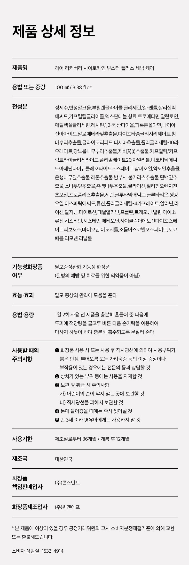 | 화장품제조업자, 화장품책임판매업자 및 맞춤형화장품판매업자 | 상품 상세페이지 참조 | 제조국 | 상품 상세페이지 참조 |