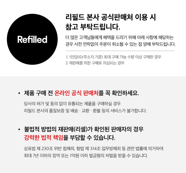 - ㆍ교환/반품에 관한 일반적인 사항은 판매자가 제시사항보다 관계법령이 우선합니다.