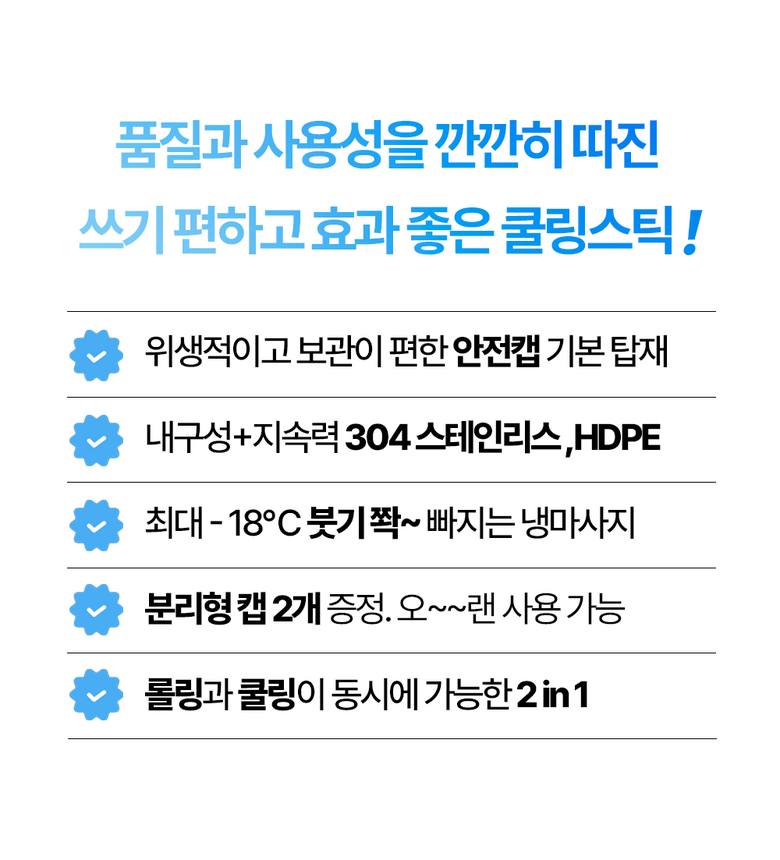 | 품명 및 모델명 | 믿추 한방에 붓기 쫙 롤링 쿨링 마사지기 아이스 페이스 쿨러 스틱 바디 얼굴 | 인증/허가 사항 | 해당사항없음 |