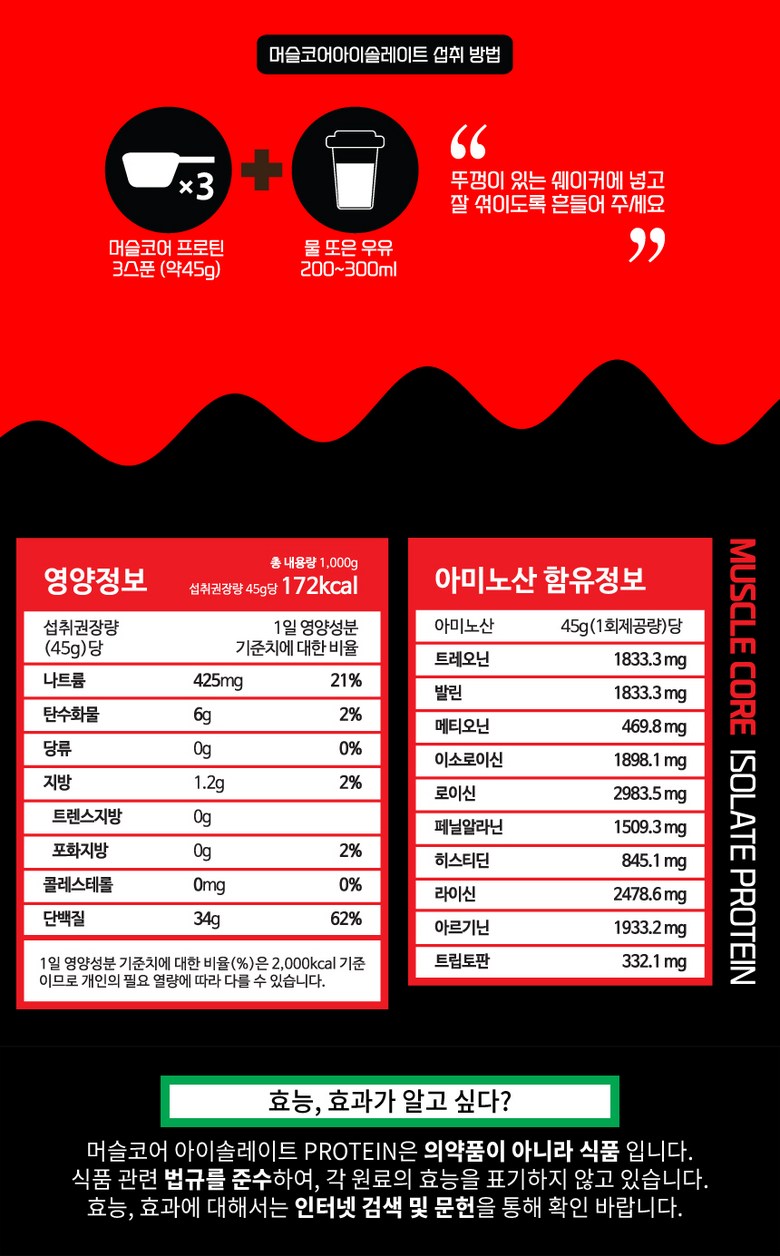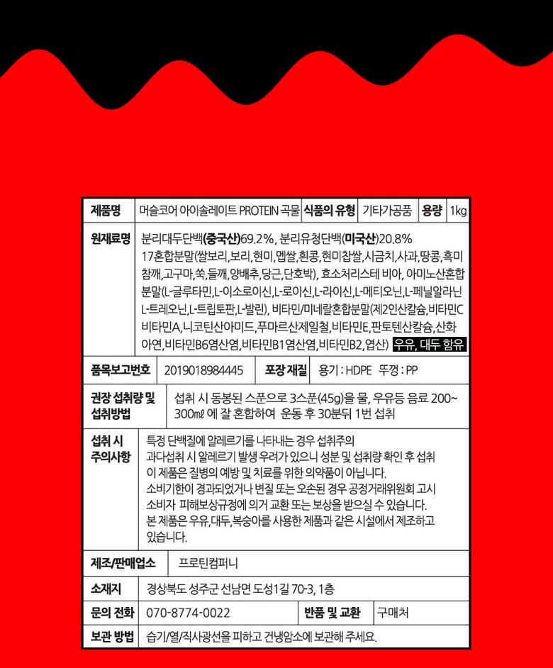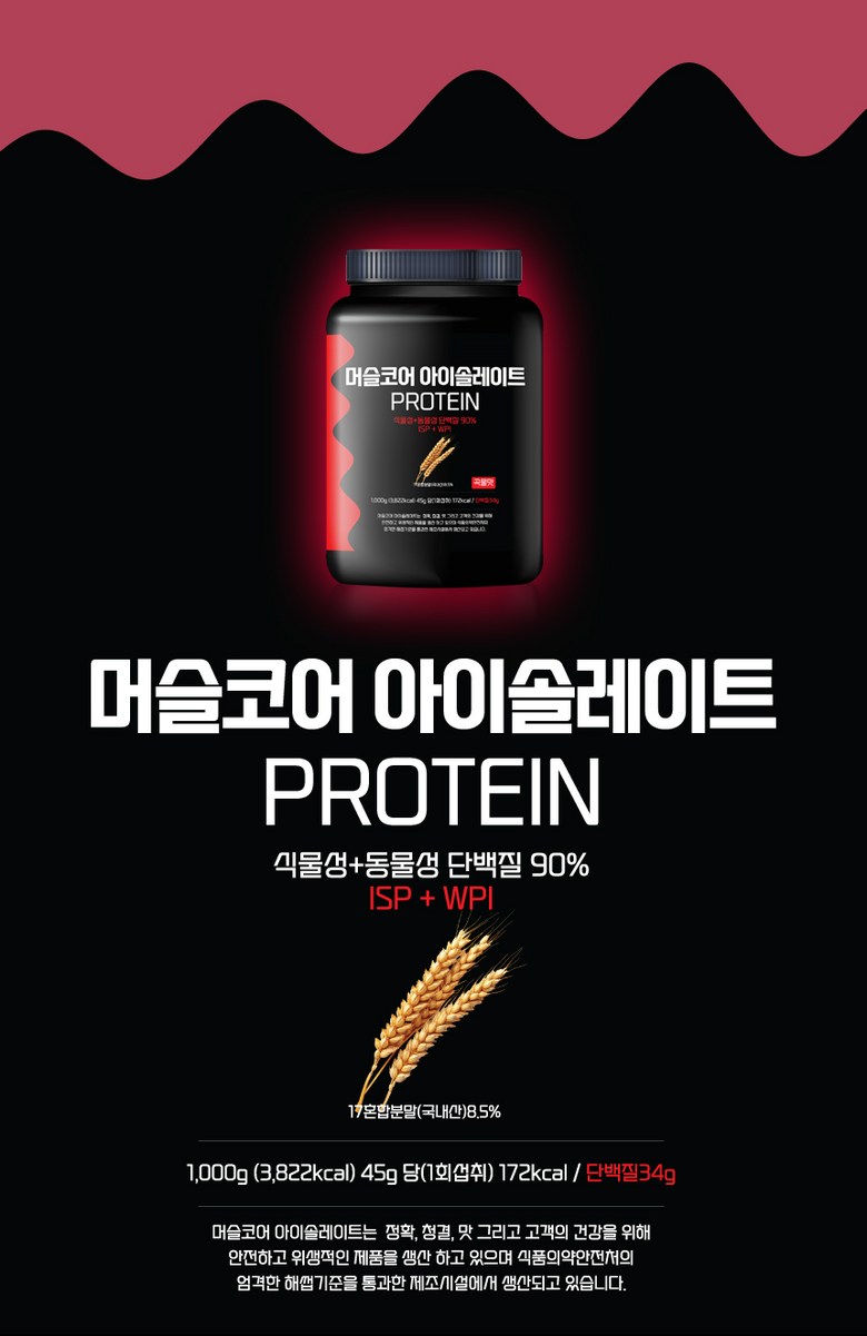 | 제품명 | 머슬코어 아이솔레이트 PROTEIN 곡물 | 식품의 유형 | 기타가공품 |