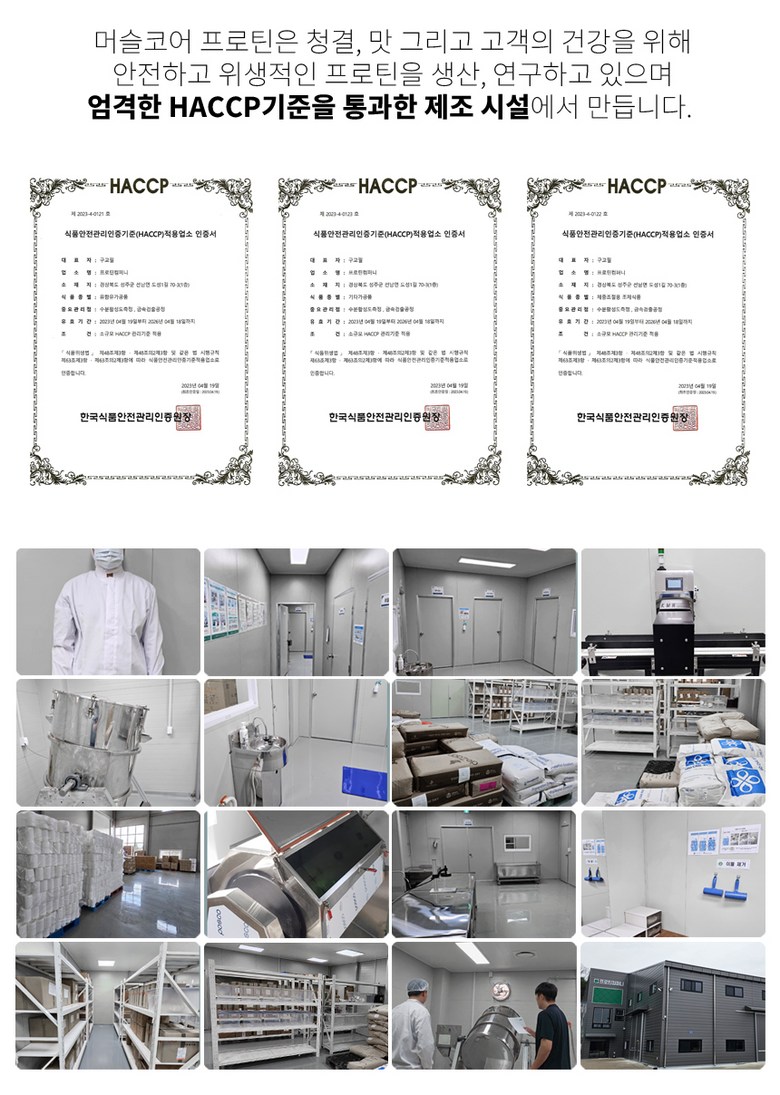 | 생산자 및 소재지 | 프로틴컴퍼니 / 경북 성주군 선남면 도성1길 70-3 HACCP인증제조시설 | 제조연월일, 소비기한 또는 품질유지기한 | 소비기한(또는 유통기한) : 2027년 11월 01일 이거나 그 이후인 상품 제조년월일 : 2025년 11월 02일 이후인 제조상품 |
