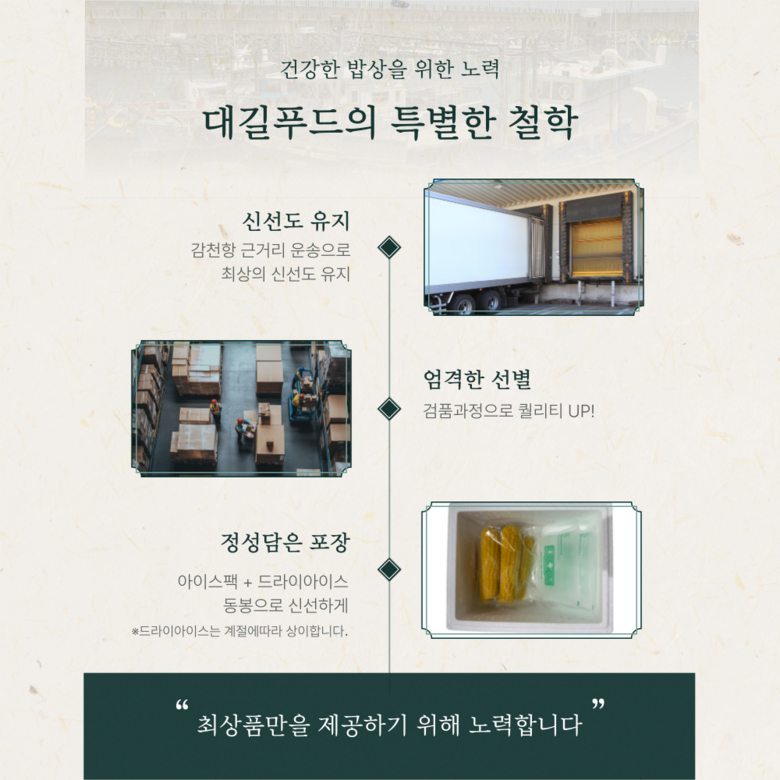 | 배송방법 | 신선/냉장/냉동 | 배송비 | 무료배송 · 도서산간 추가 배송비 - 제주 지역: 6,000원 - 도서산간 지역: 8,000원 |