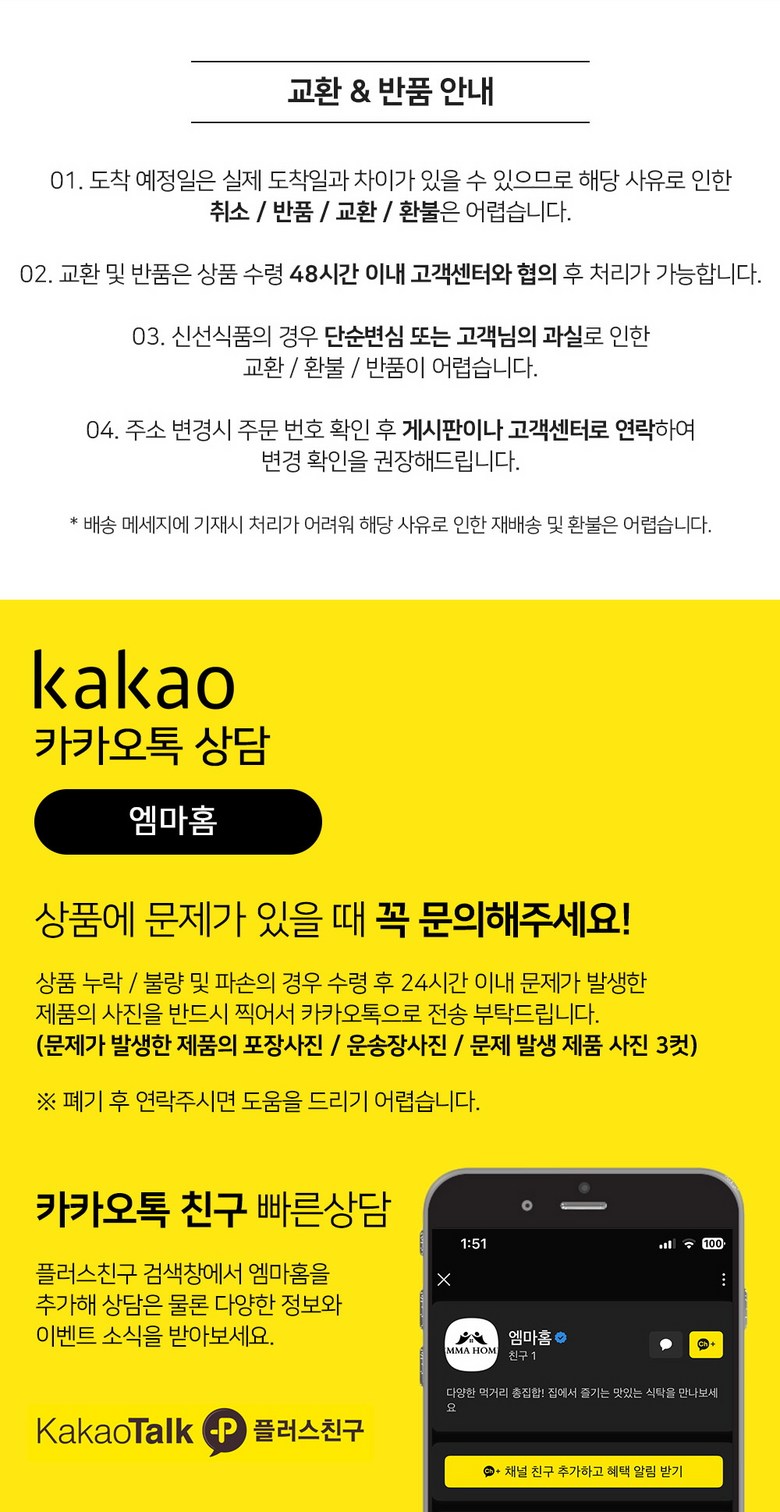 - ㆍ교환/반품에 관한 일반적인 사항은 판매자가 제시사항보다 관계법령이 우선합니다.