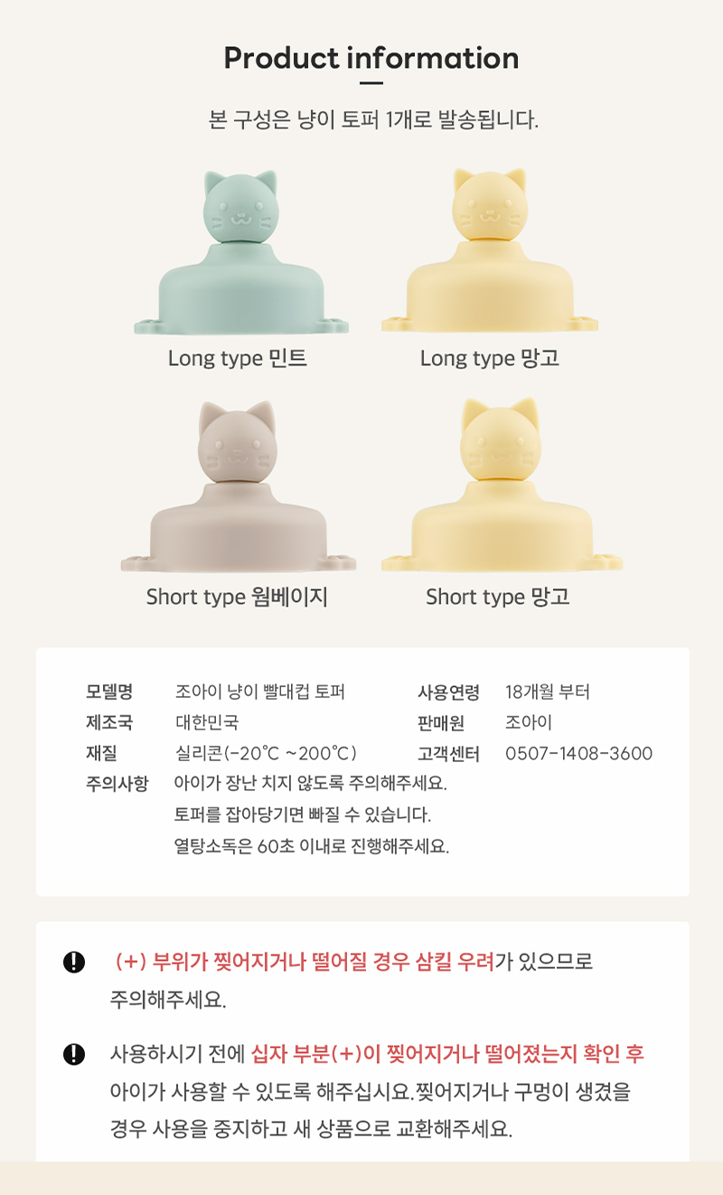 | 품명 및 모델명 | 조아이 빨대컵 호환 뚜껑 냥이 올실리콘 토퍼 | 재질 | 컨텐츠 참조 |
