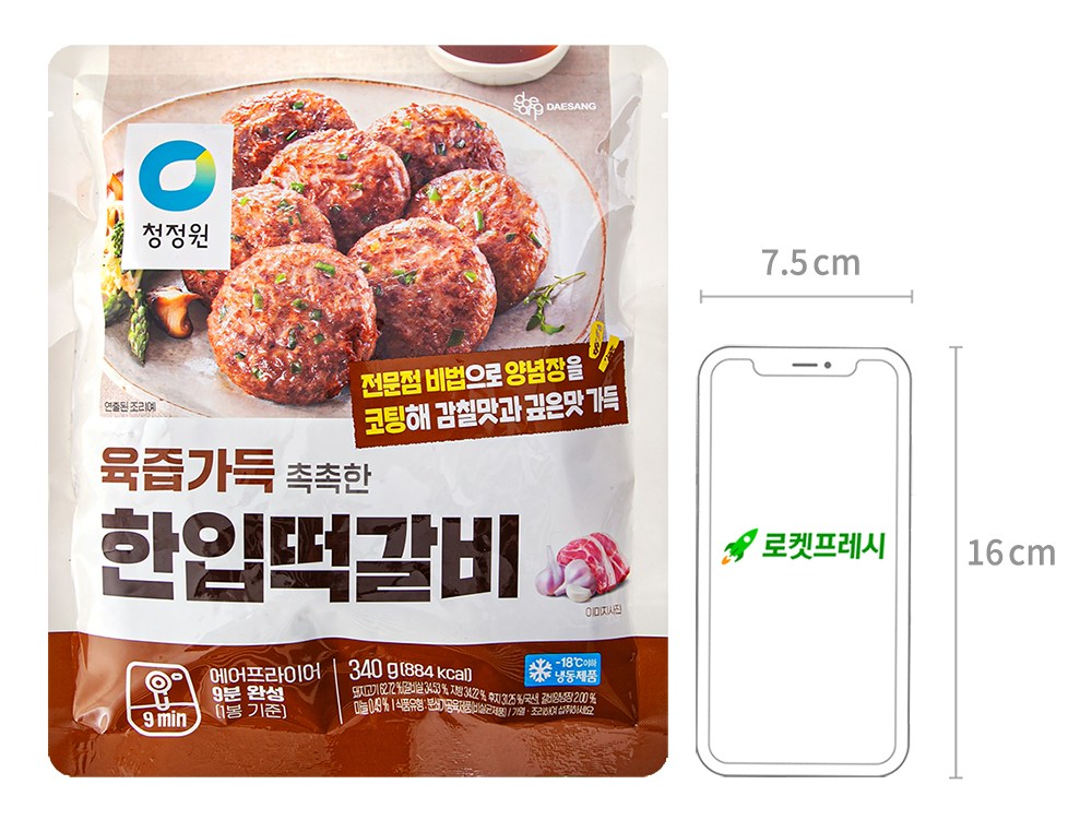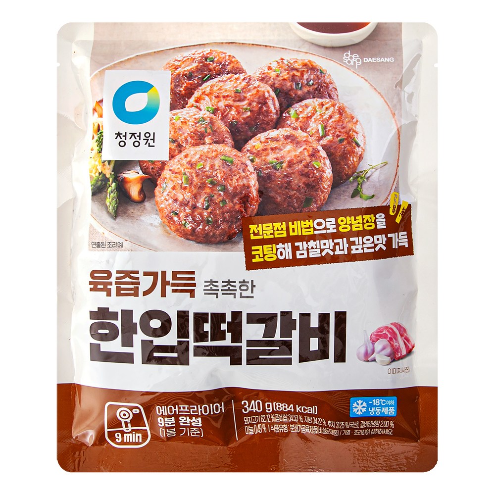 달짝지근한 양념장을 코팅해 전문점의 맛을 느낄 수 있는 한입 떡갈비예요. 돼지고기의 고소하고 촉촉한 육즙이 가득하고, 양파와 대파가 콕콕 박혀 더욱 맛있게 드실 수 있답니다. 에어프라이어로 조리해 간편하게 즐겨보세요.