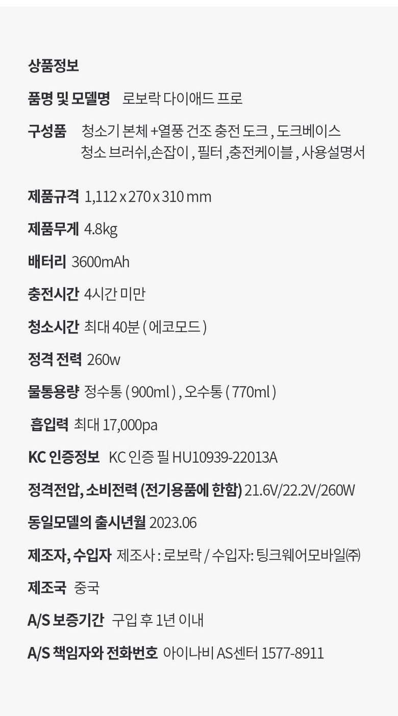 | 정격전압, 소비전력 | 상품 상세페이지 참조 | 에너지소비효율등급 | 상품 상세페이지 참조 |