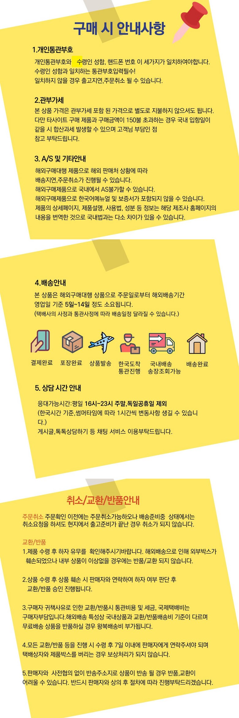 - ㆍ교환/반품에 관한 일반적인 사항은 판매자가 제시사항보다 관계법령이 우선합니다.