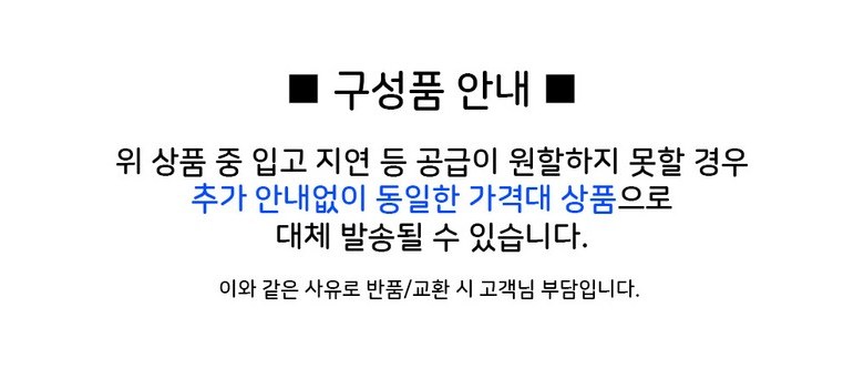 - ㆍ교환/반품에 관한 일반적인 사항은 판매자가 제시사항보다 관계법령이 우선합니다.