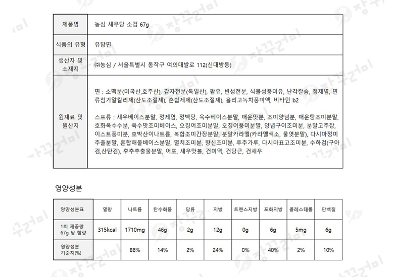 | 생산자 및 소재지 | 상품 상세페이지 참조 | 제조연월일, 소비기한 또는 품질유지기한 | 상품 상세페이지 참조 |