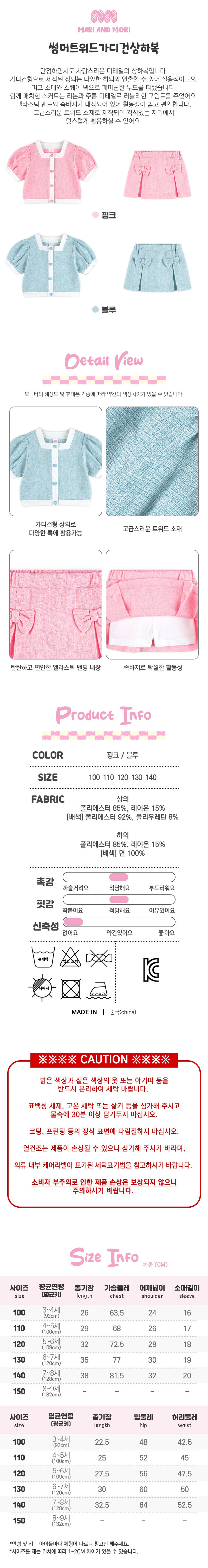 | 품명 및 모델명 | 썸머트위드가디건상하복 (핑크) (100) | KC 인증정보 | 유/KC마크 |