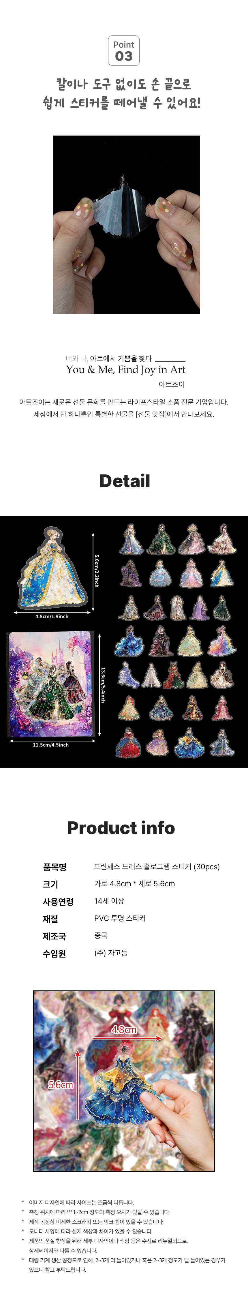 | 품명 및 모델명 | 아트조이 프린세스 드레스 홀로그램 스티커 30pcs | 인증/허가 사항 | 해당없음(14세이상) |