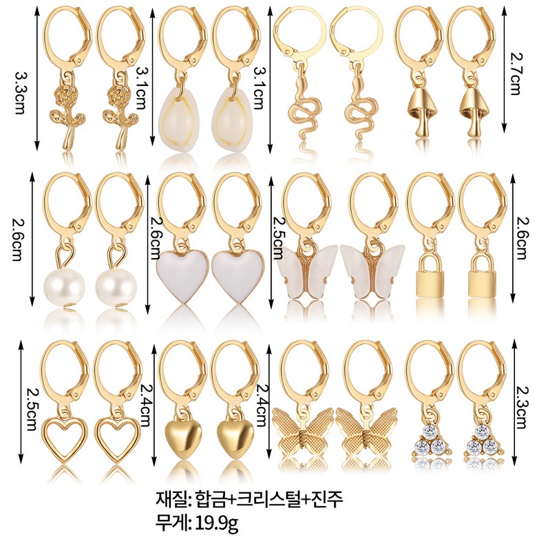 RoseAria 여성 디자인 드롭 펜던트 귀걸이 12종 세트