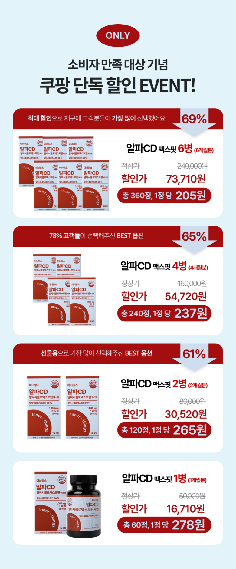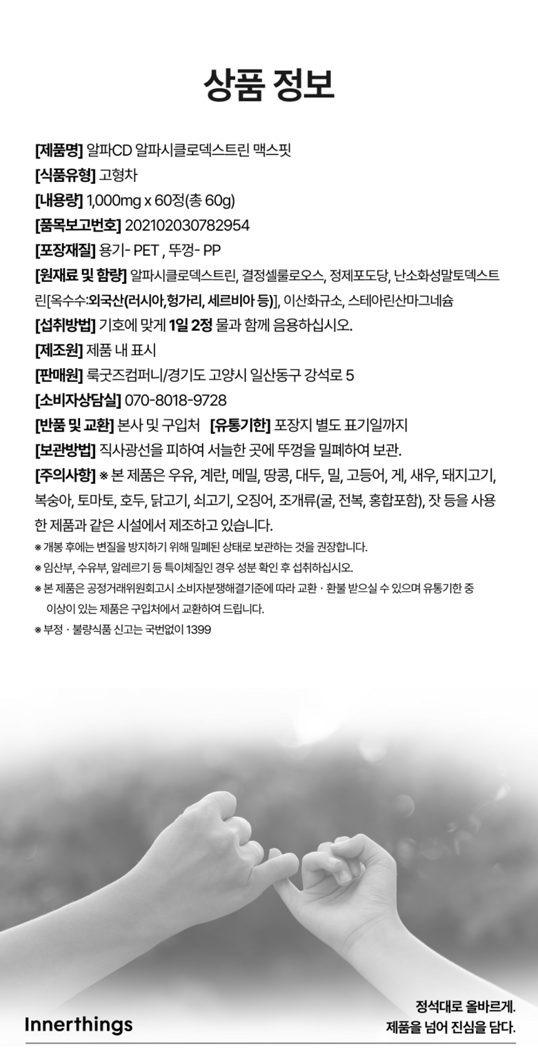 | 제품명 | 상품 상세페이지 참조 | 식품의 유형 | 상품 상세페이지 참조 |