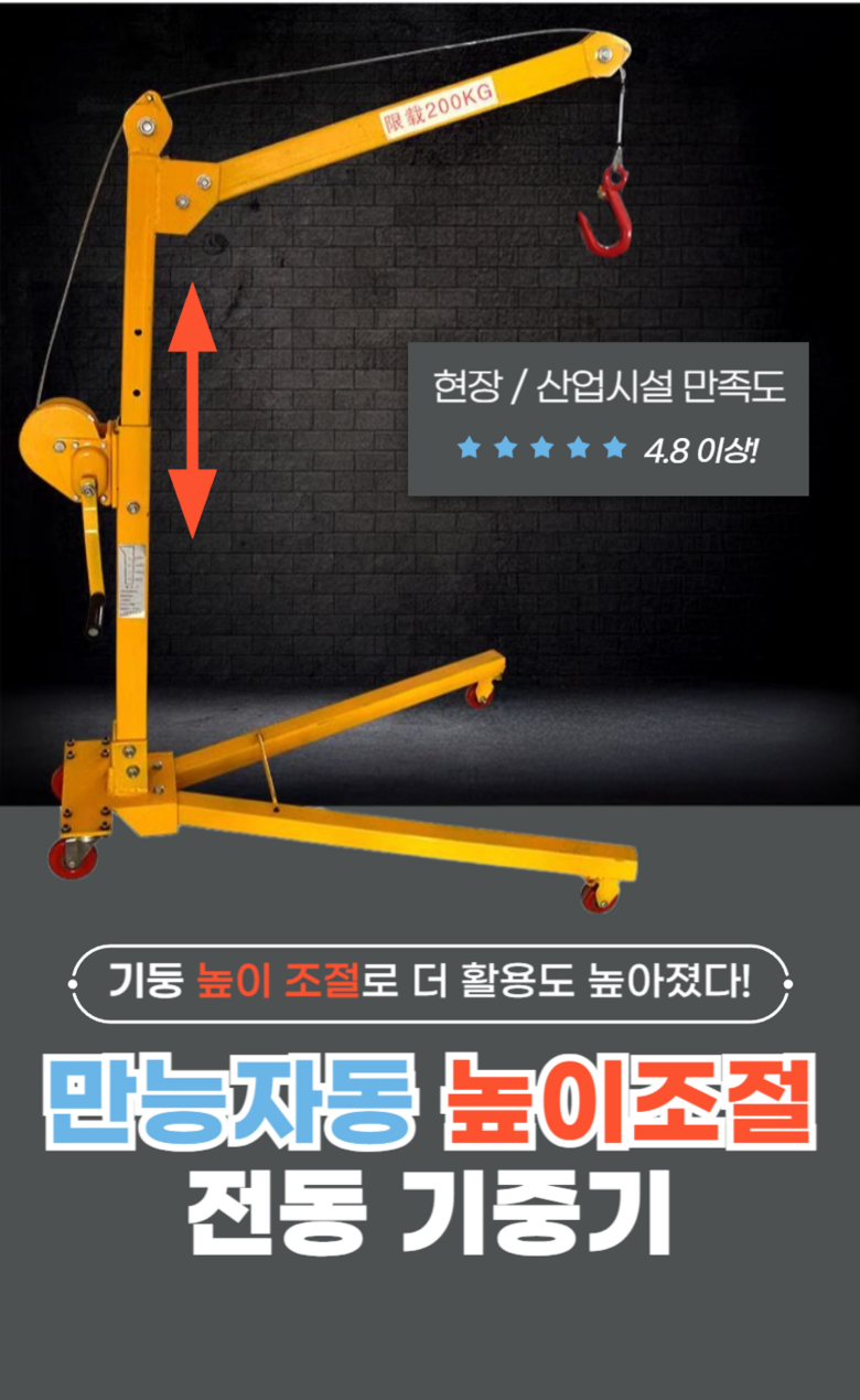 만능자동 높이조절 전동 기중기 호이스트 원치 화물 소형 이동식 크레인 리프트, 200kg, 1개