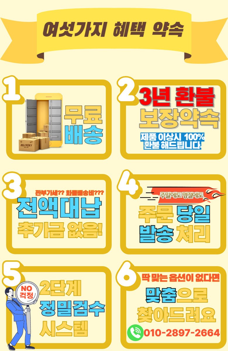 - ㆍ모니터 해상도의 차이로 인해 색상이나 이미지가 실제와 달라, 고객이 단순 변심으로 교환/반품을 무료로 요청하는 경우