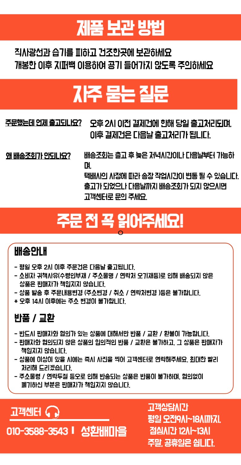 - ㆍ모니터 해상도의 차이로 인해 색상이나 이미지가 실제와 달라, 고객이 단순 변심으로 교환/반품을 무료로 요청하는 경우