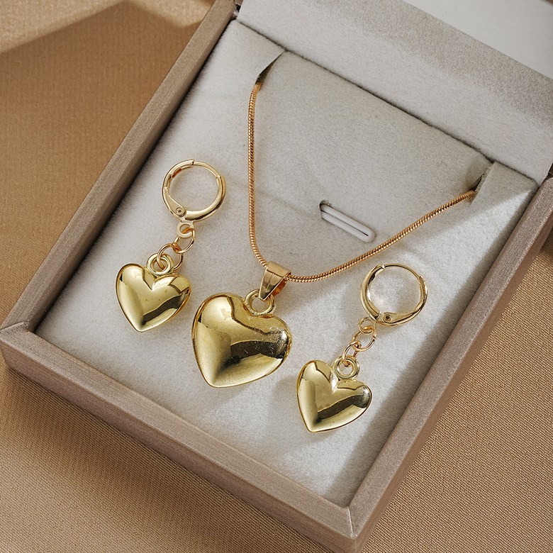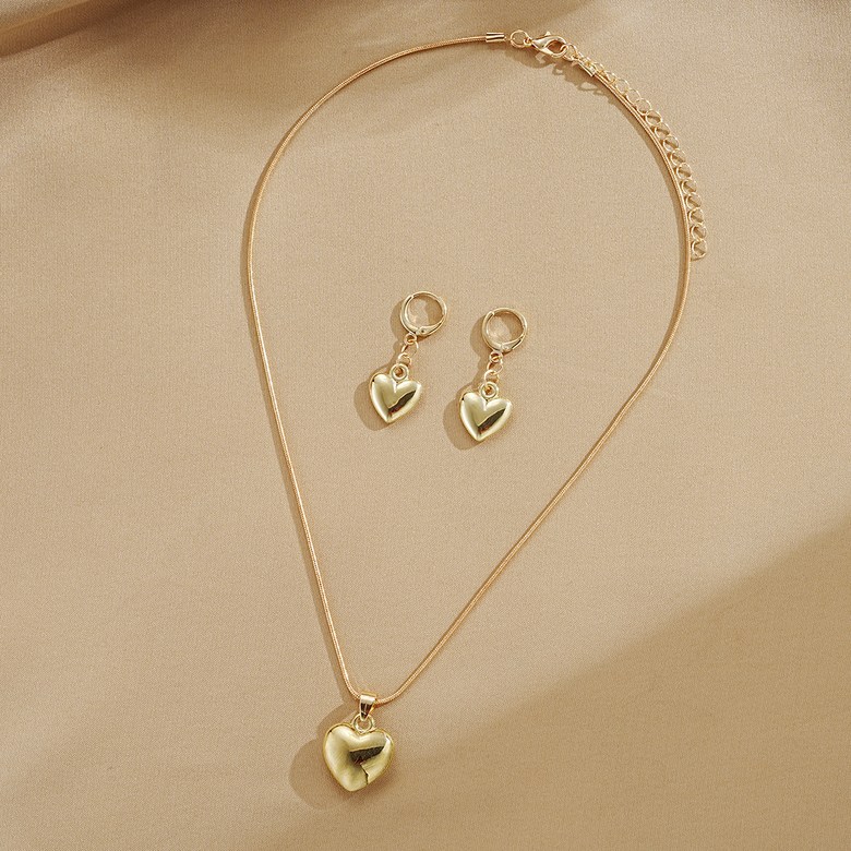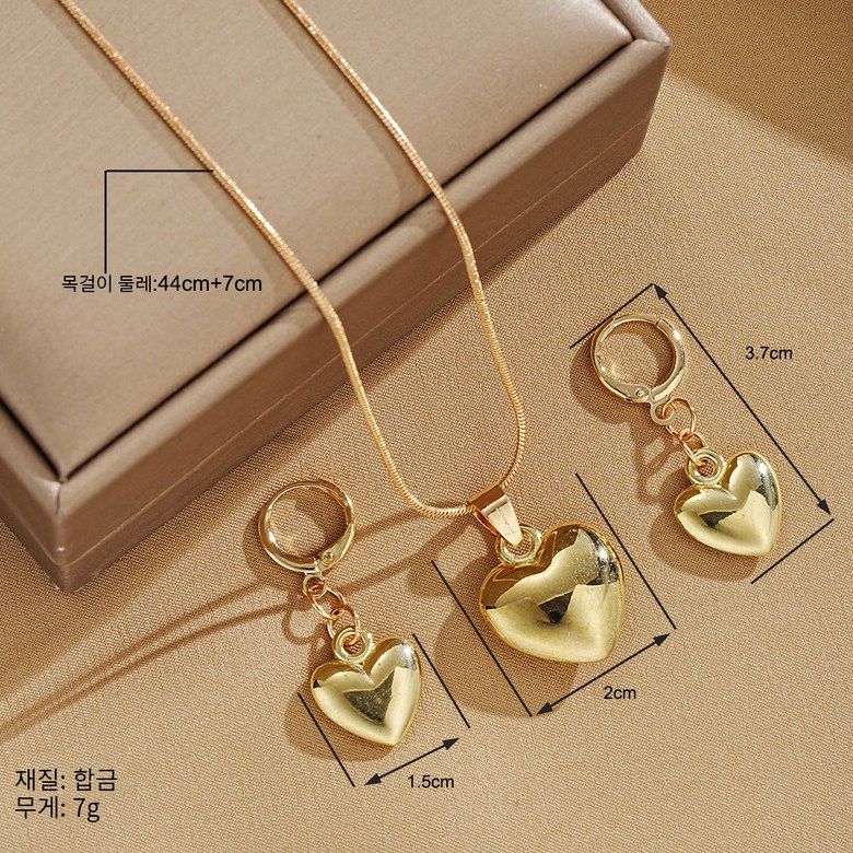 RoseAria 여성 하트 목걸이 + 원터치 귀걸이 세트