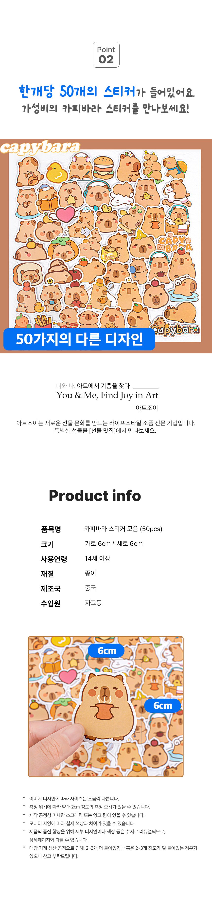 | 품명 및 모델명 | 아트조이 카피바라 스티커 B형 | 인증/허가 사항 | 해당없음(14세 이상) |