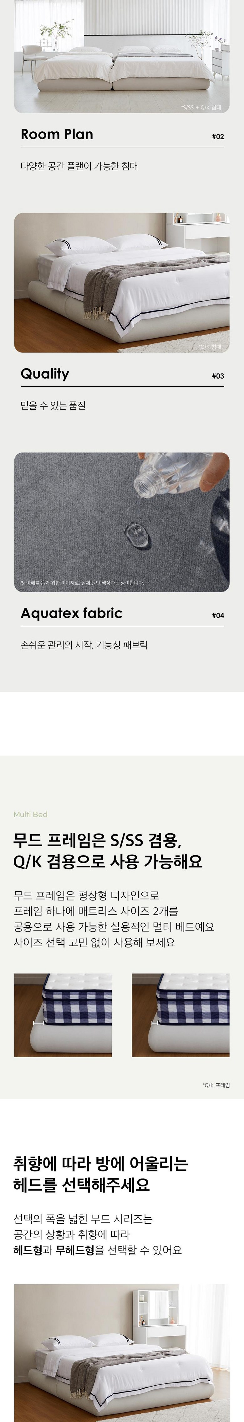 | 품명 | 무드 무헤드 아쿠아텍스 페브릭침대 Q/K 평상형 호텔 침대프레임 (매트별도) / 신혼가구/나혼산/편한침대/방수원단 | KC 인증정보 | 해당없음 |